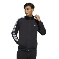 汗を素早く吸収する、スポーティな3ストライプスジャケット・フルジップ・汗を吸収するファブリックを使用・両サイドにポケット・リブ仕上げの袖口と裾