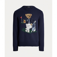 【RALPH LAUREN 】人気のPoloベアでコーディネート!【トップス】カラーブロックジャケット。着回しの効く収納可能なフードを採用。フロントポケットにはハンドウォーマー用のスロット付き。【セーター】蒸れにくいCOOLMAXファイバーを含むコットン混紡糸で編み上げた、クールで快適な着心地をキープするセーター。ゴルフコースで飲み物を楽しむ人気のPoloベアをフロントにあしらったアイテム。【ボトムス】ストレッチ混のフェザーウェイトのツイルで、快適な着心地をキープするスリムフィットのパンツ。【帽子】蒸れにくいスウェットバンドとロープトリムが特徴的なハイクラウンのツイルキャップ。ゴルフカートに乗ったアイコニックなマスコットをあしらった華やかなグラフィックの刺繍を施したアイテム。【シューズ】eccoトリプルソール構造により全く新しい柔らかく軽快に弾む 歩き心地+スウィング時の安定性を実現。アッパーに高いフィット感を実現する素材を採用し、ソールは低重心構造で高いグリップ力を発揮します。【キャディーバッグ】右手にカクテルを持ったRLXベアを前ポケット部に色鮮やかに刺繍、カラーアクセントとしてレザーを部分使いし上品さを演出しています。【着用サイズ】ジャケット:Lセーター:Lボトムス:91cmシューズ:26.5cm