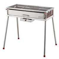 BBQをもっと楽ちんでエコに!アルペンアウトドアーズで人気の焦付きにくいで有名の円形状フライパンの四角バージョンです。四角になった事で様々なBBQグリルにセットできて、しかも耐熱性が約2倍に上がりました(全てのBBQグリルにフィットするわけではありません)しかも裏面はグリルやバーナーからずれ落ちにくい構造になっております。網は数回で使えなくなるし、鉄板や網の焦付きはなかなか落とせませんがそんな面倒くささや網の買い替えが今後はこれで解消されます。勿論ガス火OKですがIHは非対応になります。木製ハンドル装置したまま火にかけると焦げたり変形、燃えたりしますので料理中は外す事を推奨しますm(_ _)m