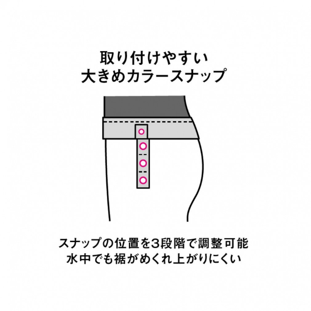 ◇ワコール社との協業によりリニューアルがされ、よりボディラインがすっきりキレイに見えるデザインになりました。水中でも動きやすく、着脱のしやすさを兼ね備えたアイテムです。またサイドのスナップ位置を修正することでお腹まわりもすっきり。パットの位置修正とアームホールゴム素材を変更することで着用感を向上させています。