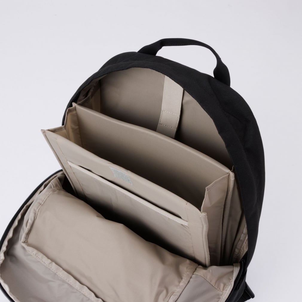 ◇デバイスやガジェット、アクセサリーなどを収納できる日常生活での利便性を追求した高機能デイパックです。ボルダーデイパックは、24Lの収納力が特長の大容量モデル。フロントにはパッド入りのガジェットスリーブを内蔵し、本体内部には13インチまでのPCやタブレット、A4サイズまでのドキュメントファイルなどが収納できる蛇腹式のスリーブを装備。さらに、自立するボックス型にデザインすることで、内部へのアクセスと収納物の出し入れをスムーズに行えます。ショルダーハーネスの付け根には、過重負荷とずり落ちを軽減するストレッチゴムバンドを採用。背面は、背骨への負担を軽減し、通気性を高めるスパインチャネル構造。長時間使用時の快適さを高めています。左サイドには貴重品の収納に便利なジッパー付きの隠しポケットを設置。素材は軽量で高強度の600デニールリサイクルポリエステルを使用した、環境への負荷を抑えるグリーンマテリアル製品です。日常のカジュアルユースから荷物の多い社会人まで幅広いニーズに対応します。