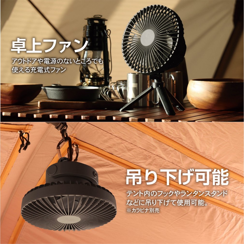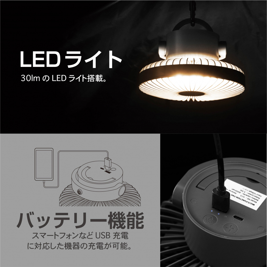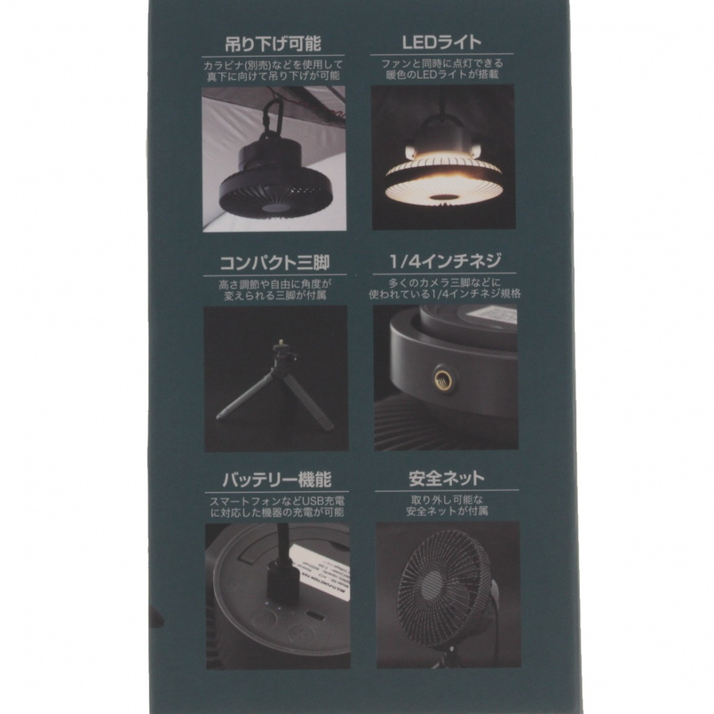 ◇ファンのヘッド部を切り離し天井からの吊り下げ使用可能(カラビナは別途ご購入下さい)、ライト付のファン機能として使用可能