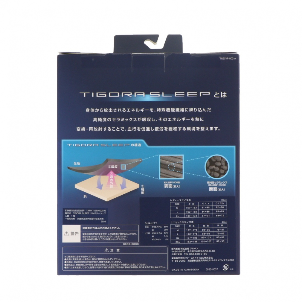 TIGORA SLEEPとは、身体から放出されるエネルギーを、特殊機能繊維に練り込んだ高純度のセラミックスが吸収し、そのエネルギーを熱に変換・再放射することで、血行を促進し疲労を緩和する環境を整えます。