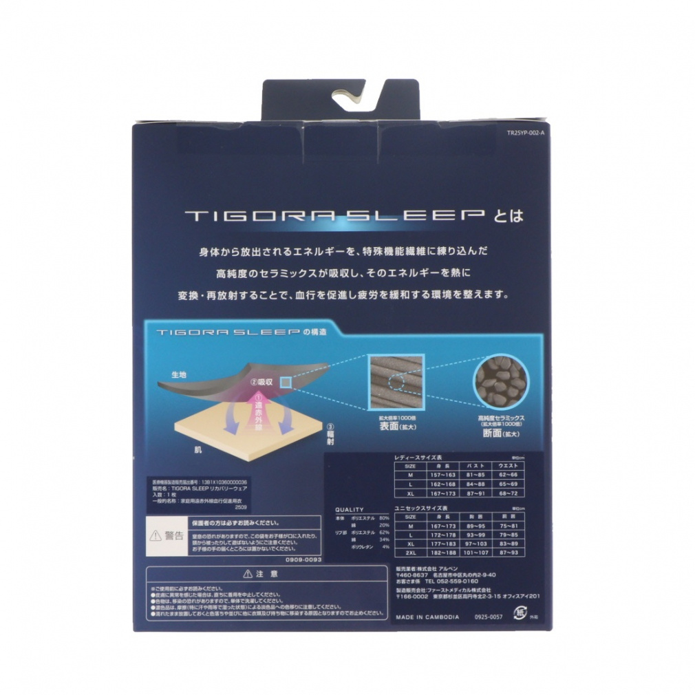 TIGORA SLEEPとは、身体から放出されるエネルギーを、特殊機能繊維に練り込んだ高純度のセラミックスが吸収し、そのエネルギーを熱に変換・再放射することで、血行を促進し疲労を緩和する環境を整えます。