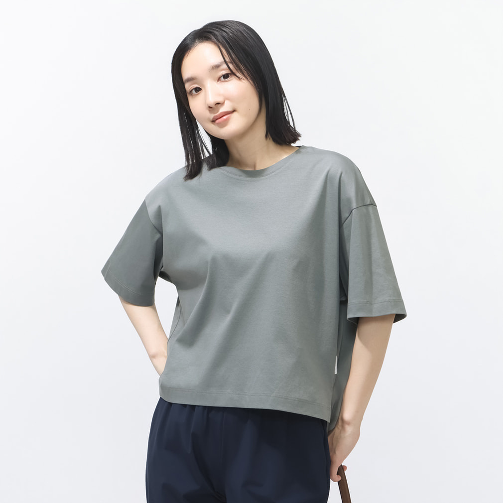 キレイ目なコーディネートにも使いやすく高見えするTシャツです。