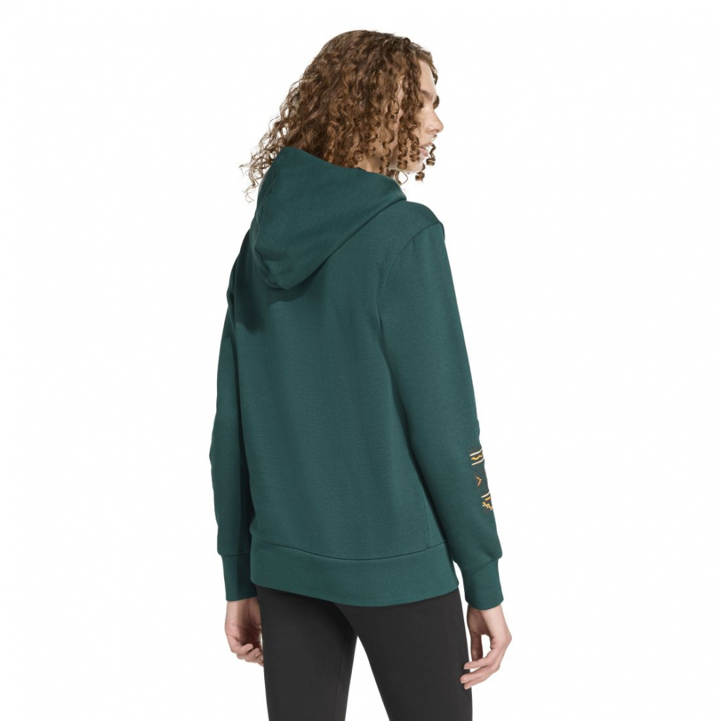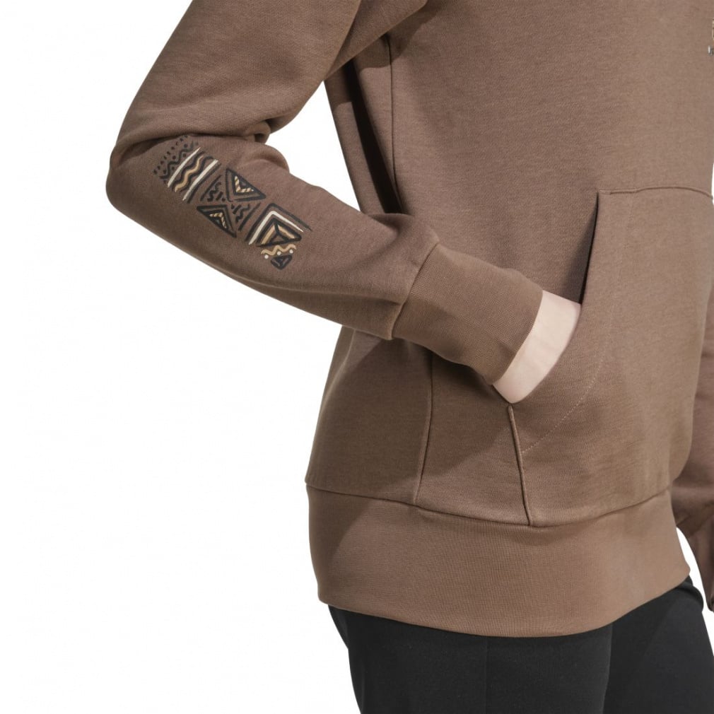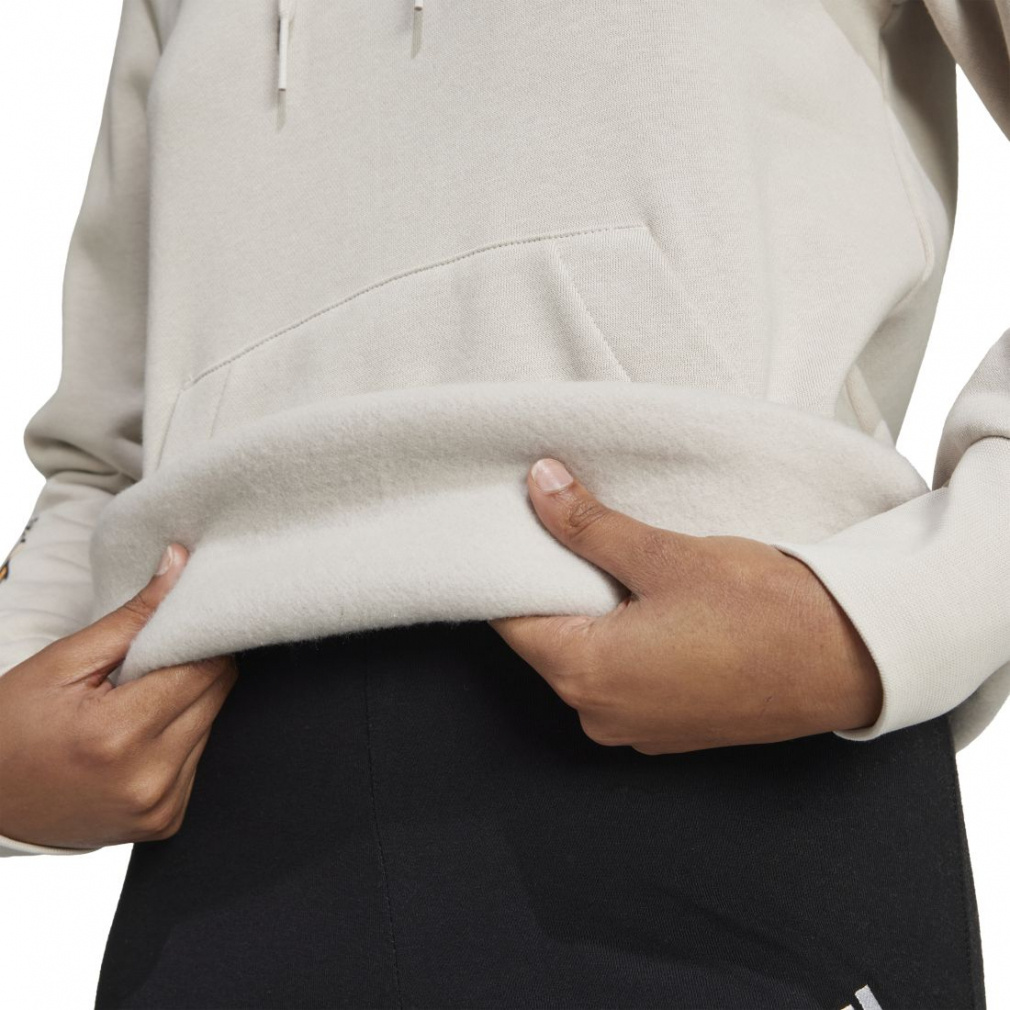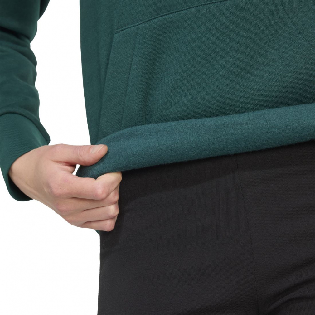 コットン混紡フリースが採用され、フードはドローコードで調節可能で快適。