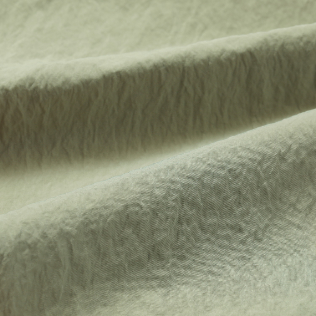撥水加工を施したさり気ない光沢感としぼ感がある生地で、カジュアルにもきれいめにも幅広くコーディネートを楽しめるアイテム。