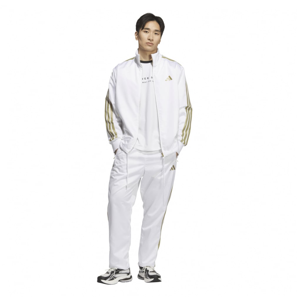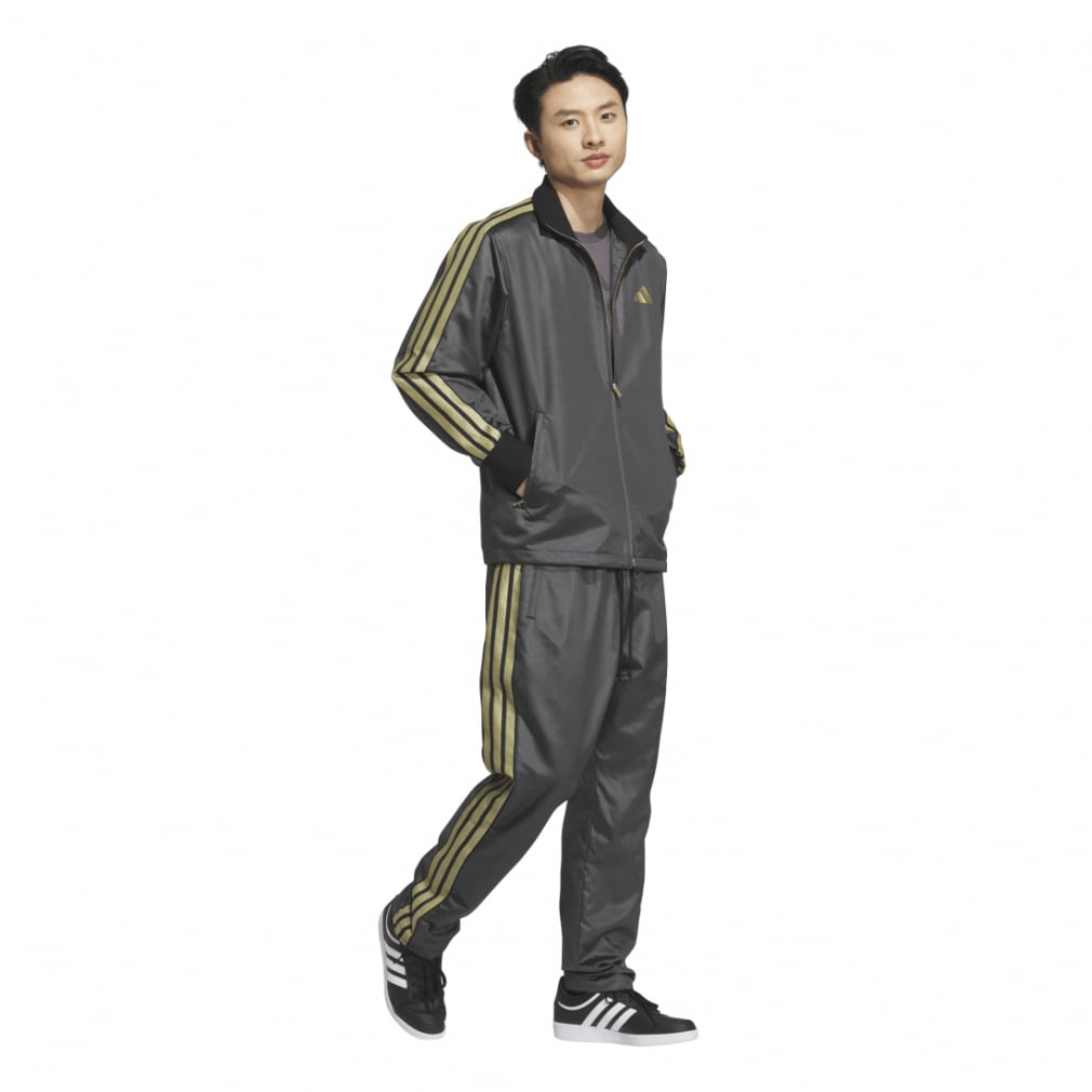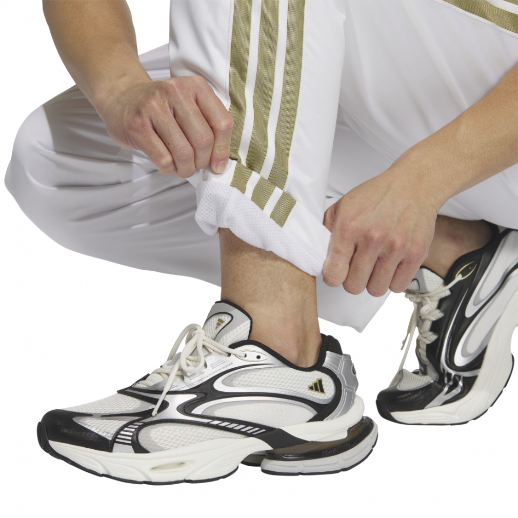 だからこそ、メタリックな光沢感が人目を惹くスリーストライプスのadidasパンツ。