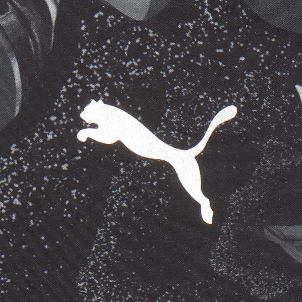 背面は無地の生地との切替になっており、切り替え部分にロゴテープを使用。