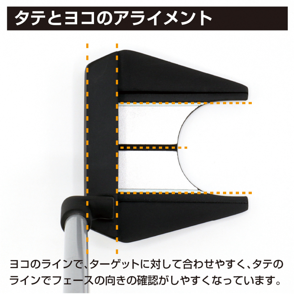 ◇構えやすいアライメントタテとヨコのアライメントが、ターゲットに対して平行に構えやすくなっています。