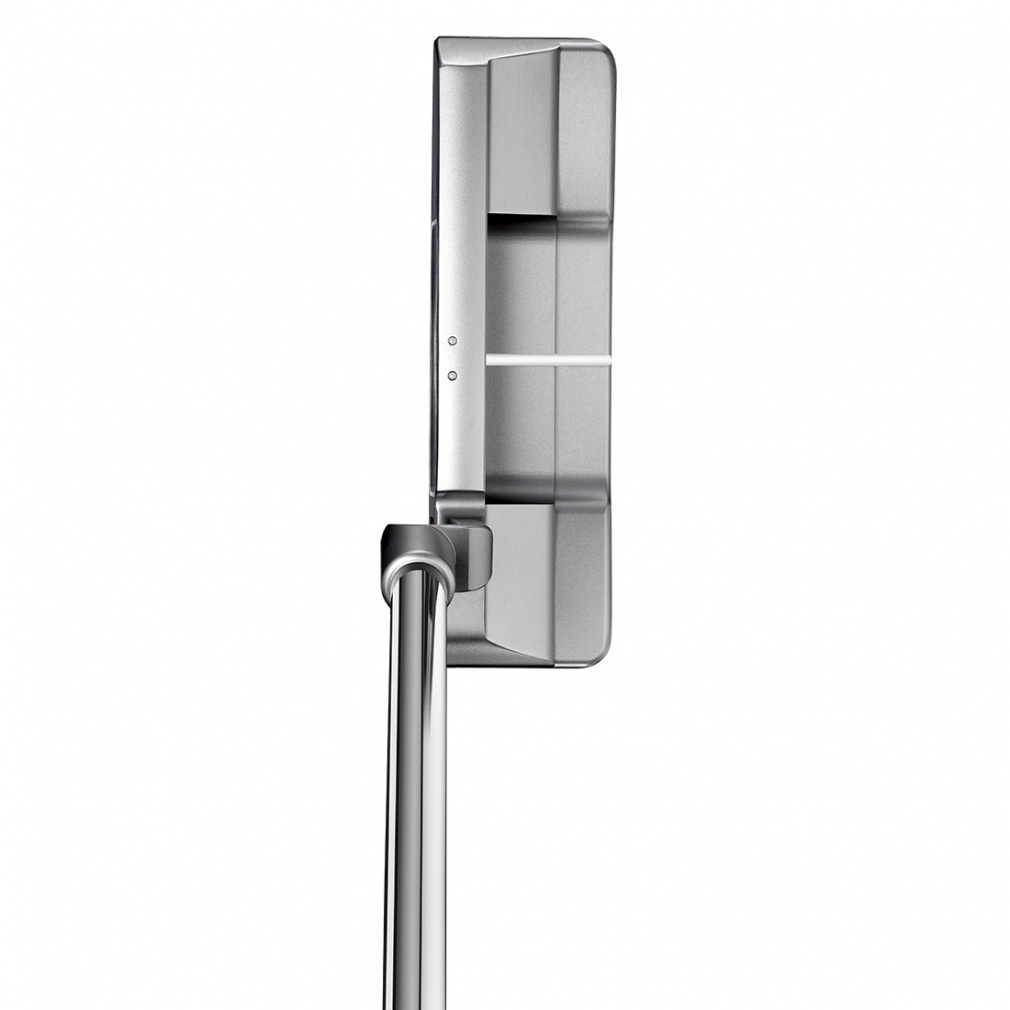 ◇パターフェイス部に加工した「溝」の幅と深さを調整することで、パターフェイス全体をスイートスポット化を実現。特殊なV型の溝により、フェイス面の中心から外に行くほど溝の幅を狭くしコンタクト面が増加、また、中心から外に行くほど溝の深さを浅くすることで反発力をコントロールし、フェイス面のどこでヒットをしても均等なストロークが出来るデザインとなっています。なた、ヘッド構造も「トゥ・ヒール」にウェイトを装着しフェイス部を軽くて硬い6061アルミニウムを使用することで、ストロークの推進性と反発力を向上。ミスヒットの無い方向性と距離感に優れたパターです。生産拠点もMADE IN U.S.A.にこだわり、生産、品質管理とも最高レベルで完成度の高いミルドパターです。