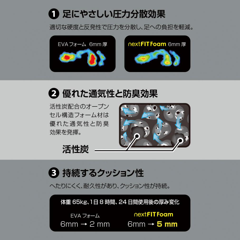 ◇適度な硬度のFoam材が圧力を分散させて、足腰への負担を軽減させる