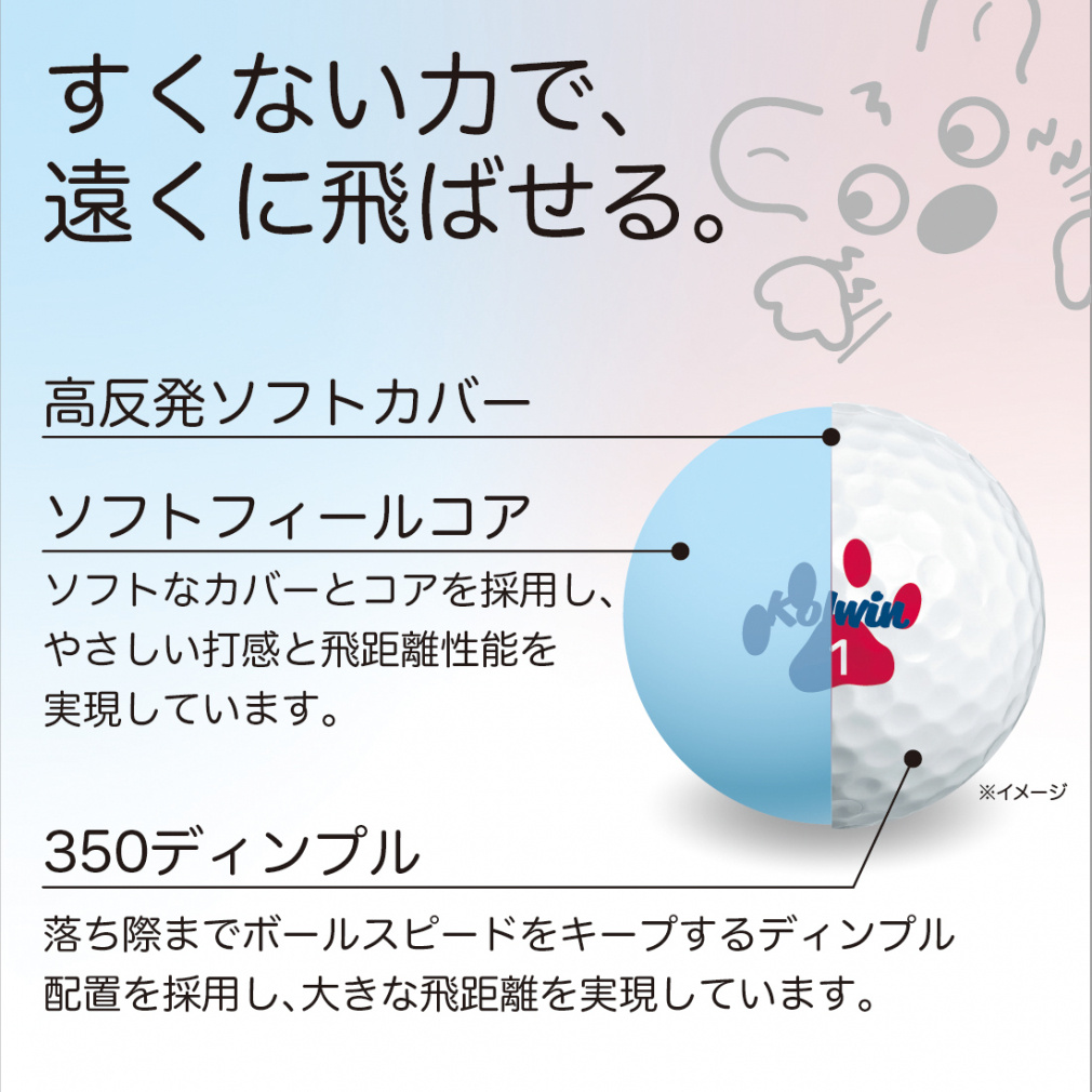 ◇ソフトなカバーとコアを採用し、やさしい打感と飛距離性能を実現。