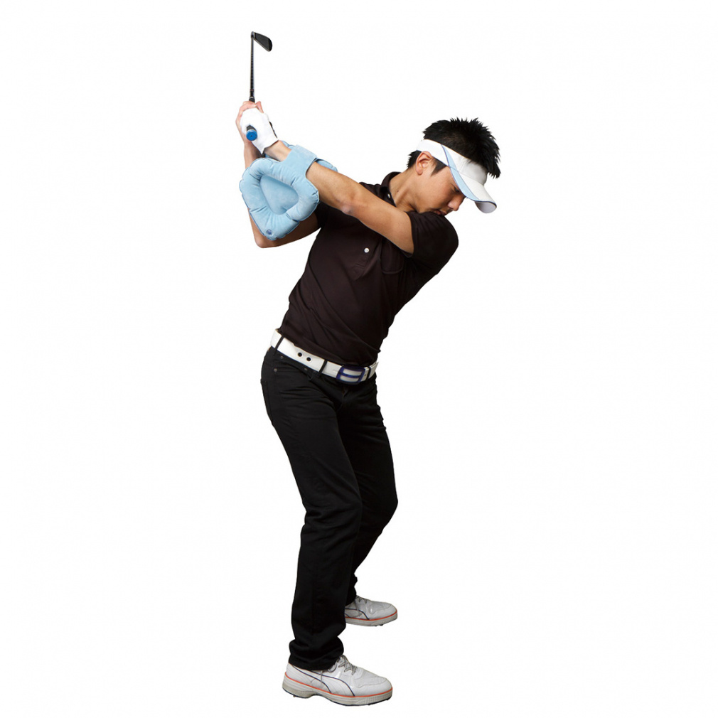 ◇ボディーターンの基本、両腕の三角形を保つコツがマスターできるスイングトレーニング用品