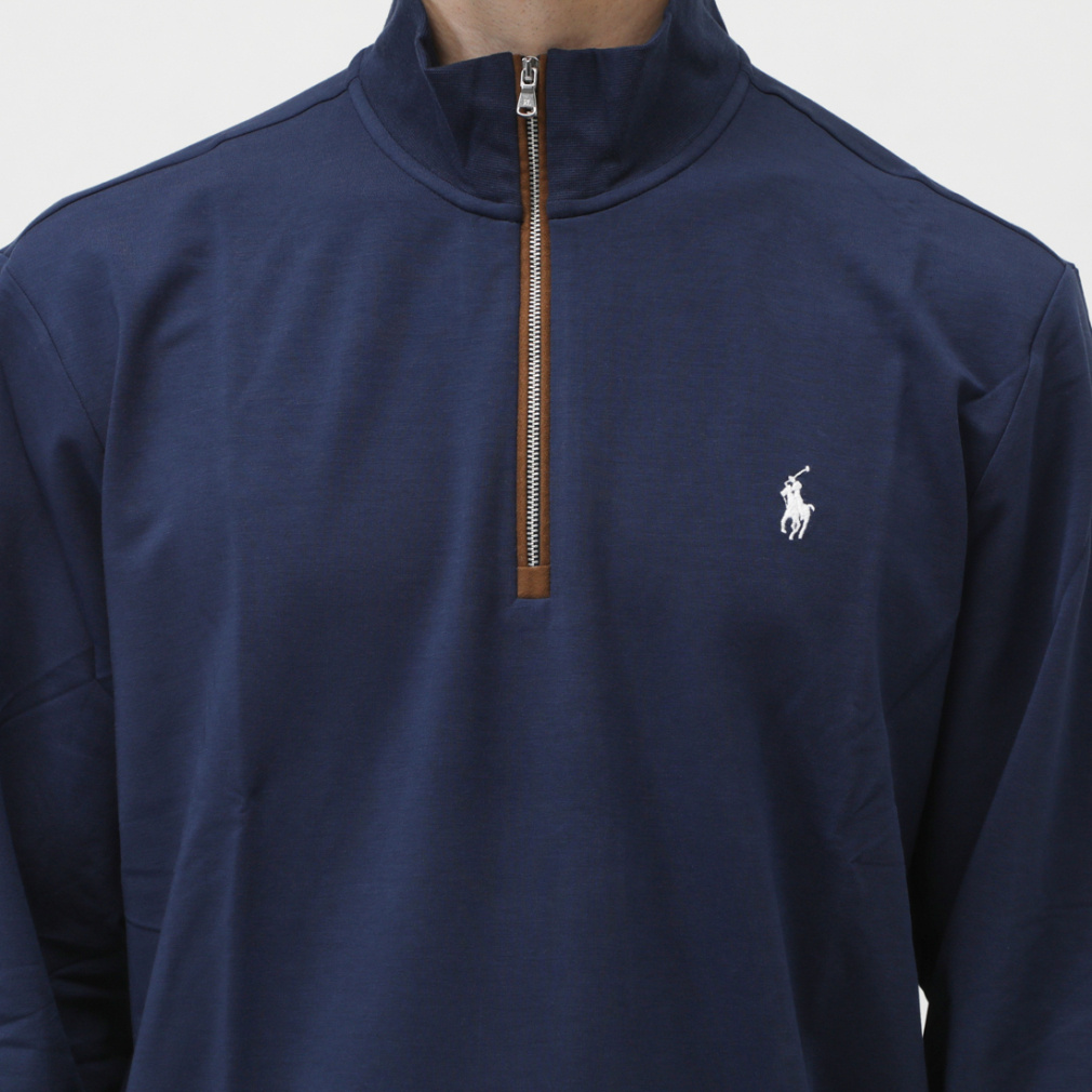 ◇クラシックフィット:Ralph Laurenで最もゆったりとしたシルエット / 低いアームホールとゆったりとした袖。リブのハイネック。フェイクスエードのトリムを施したクォータージップの前立て。長袖、リブカフス。リブの裾。左胸にシグネチャーのポニー刺繍。