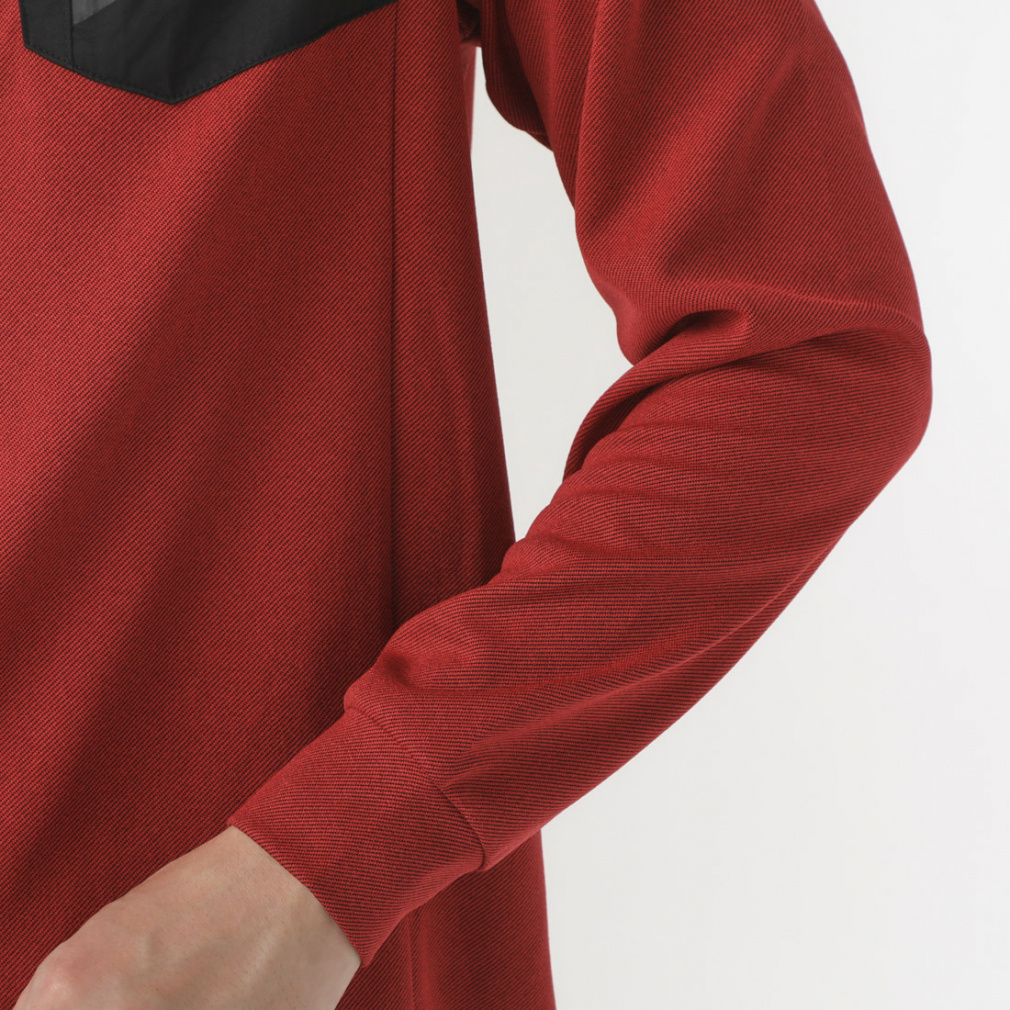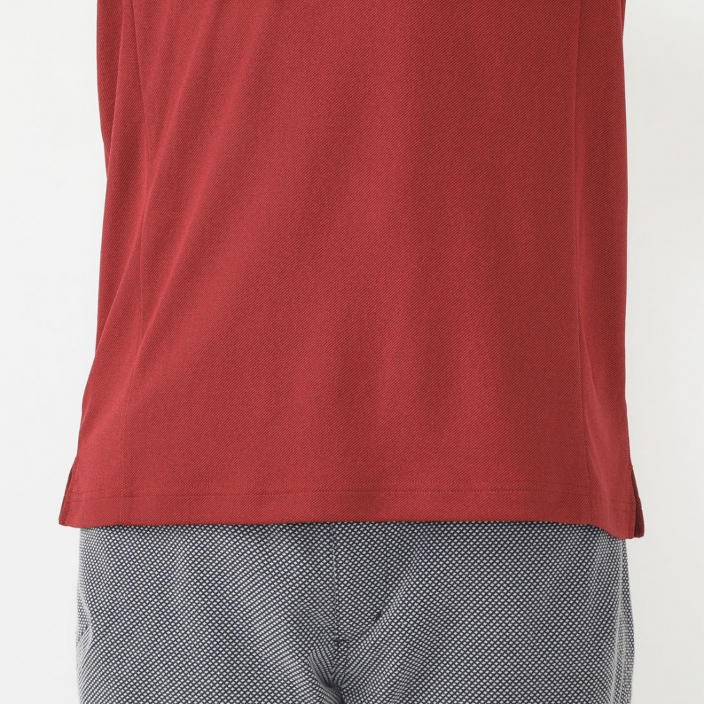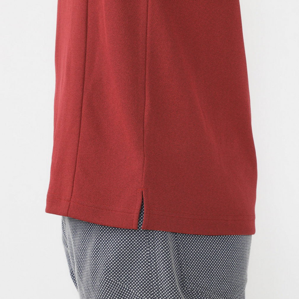 ◇ファスナー付きの胸ポケットが特徴の1枚。ポケット部分は布帛を使用し、身生地とは異なる表情がアクセント。ポロ衿仕様でスポーティーな印象も演出。衿周りはアドレス時に顎を引いても当たりにくい寸法設定をしており、プレー時のストレス解消に拘った設計。生地には光吸収発熱機能が付加されており、外部の光を吸収し熱に変換することで暖かくなります。