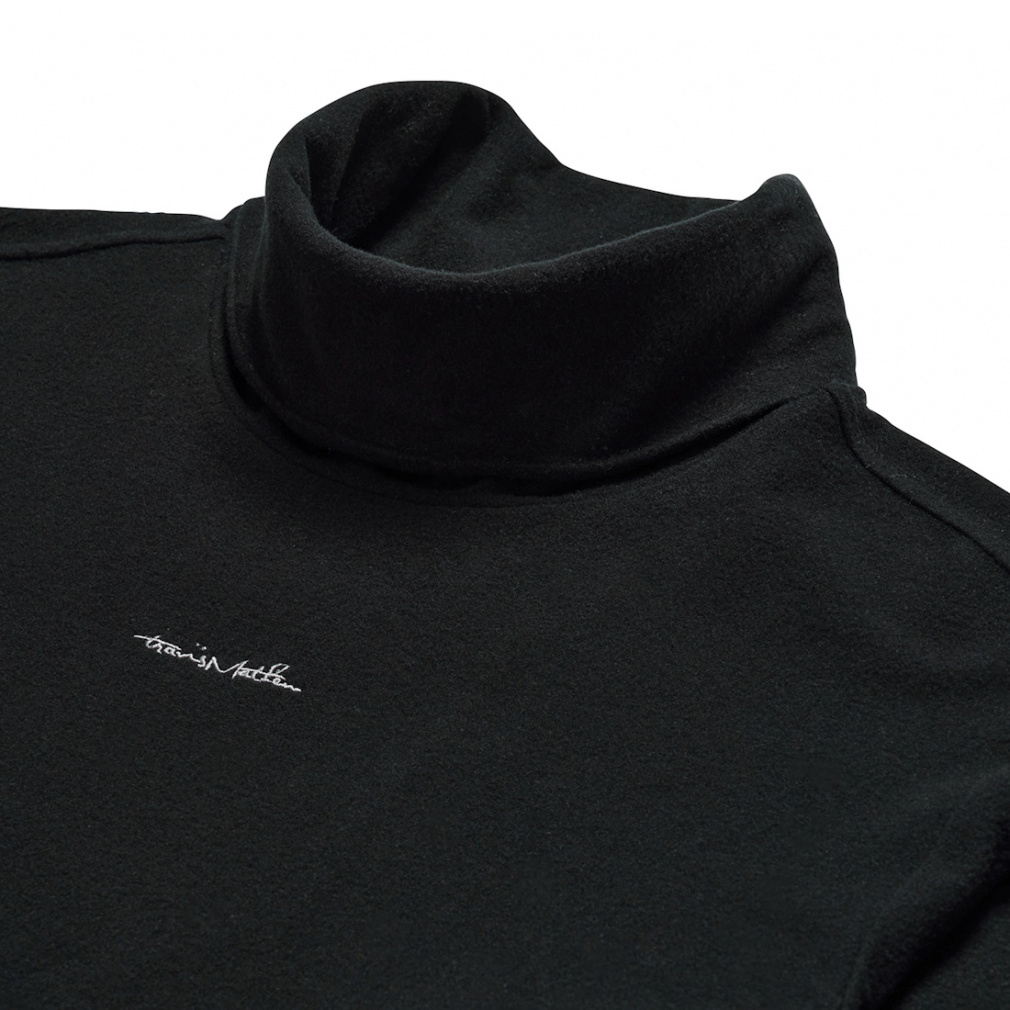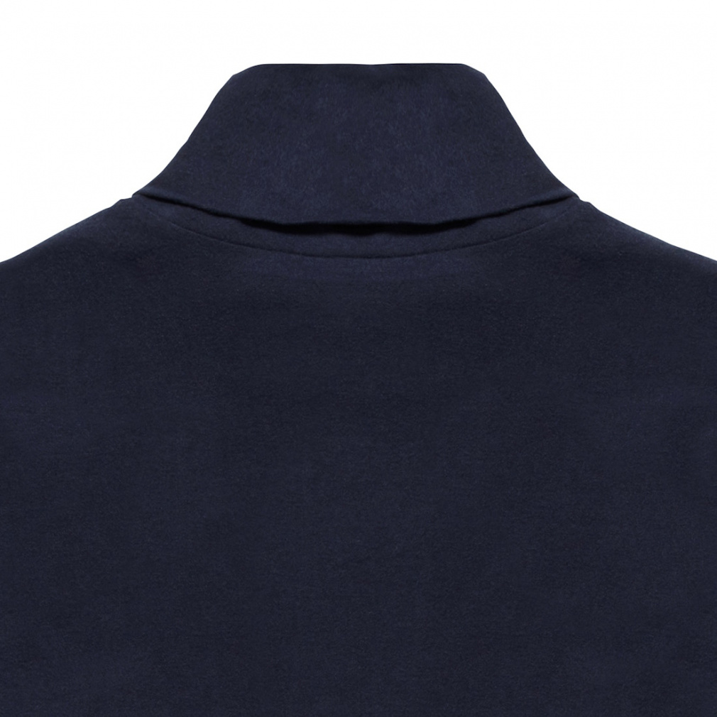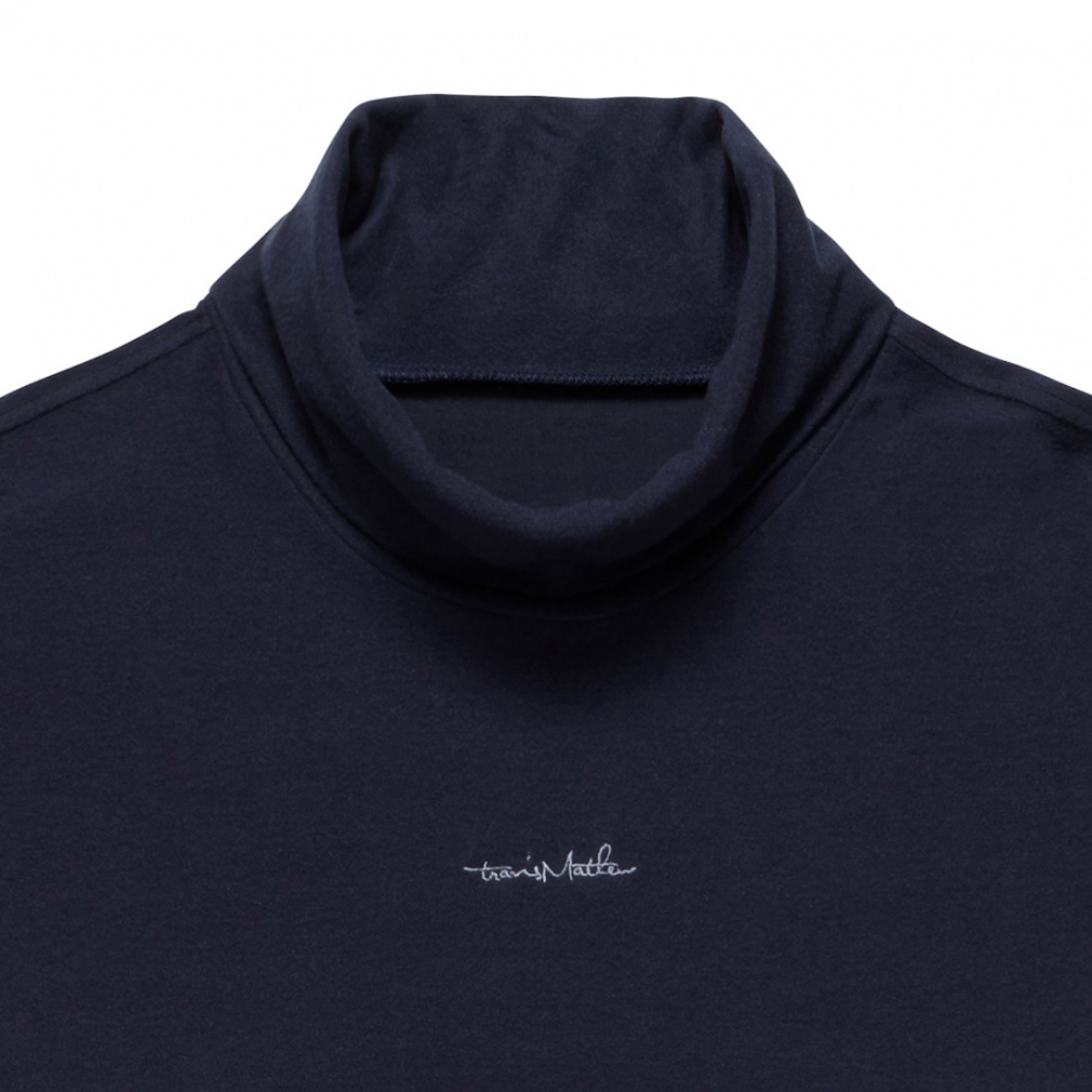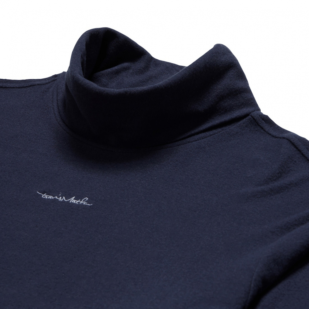 ◇表起毛の肌触りよい素材のオフタートル。バイカラーが特徴的なデザイン。