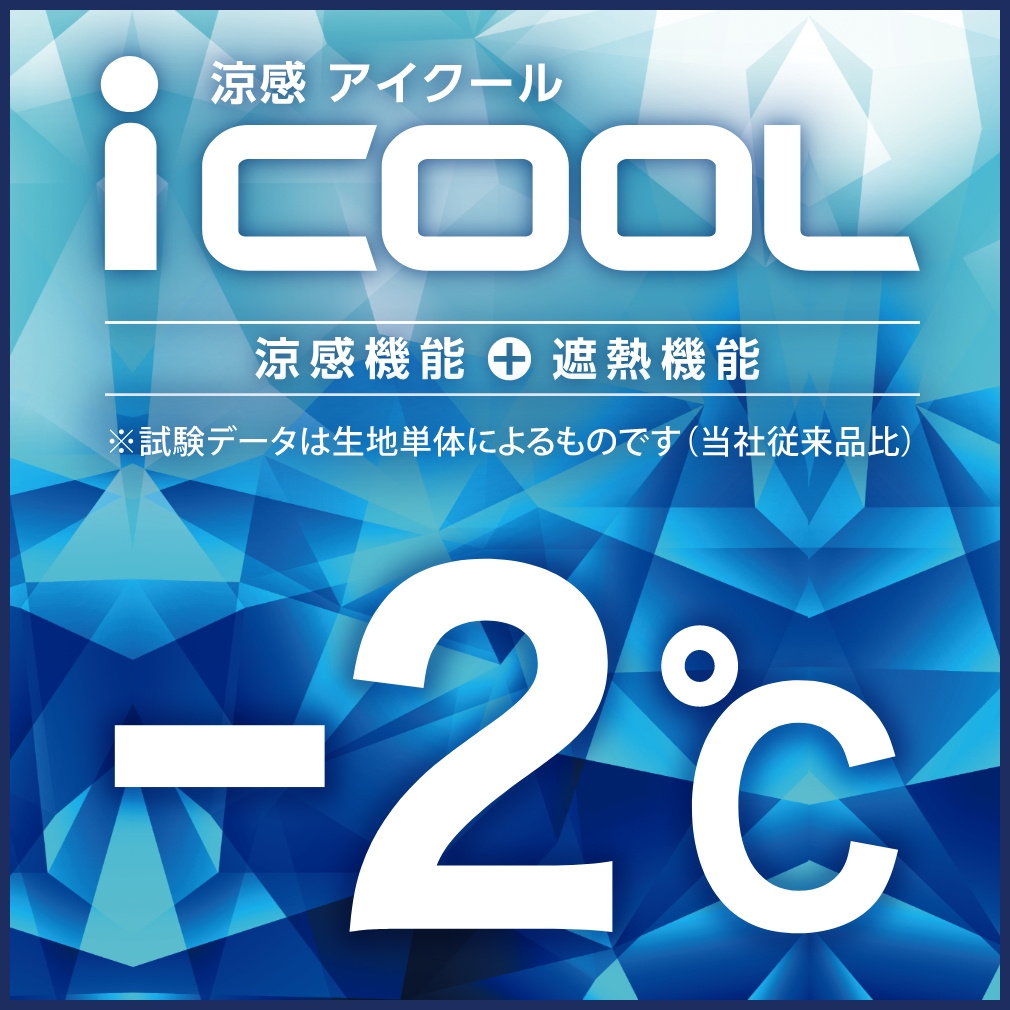 ◇涼感機能+遮熱機能で-2度(当社従来品比)実現したアイクール素材を使用。