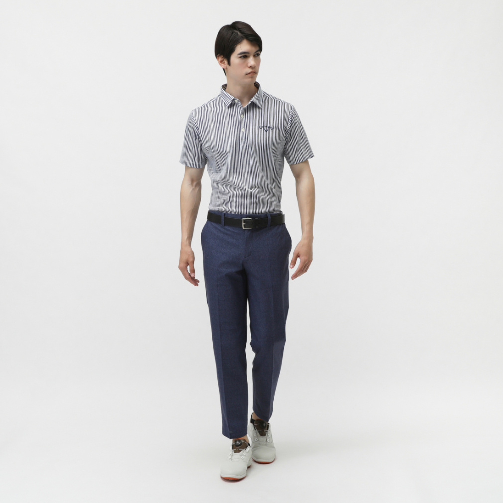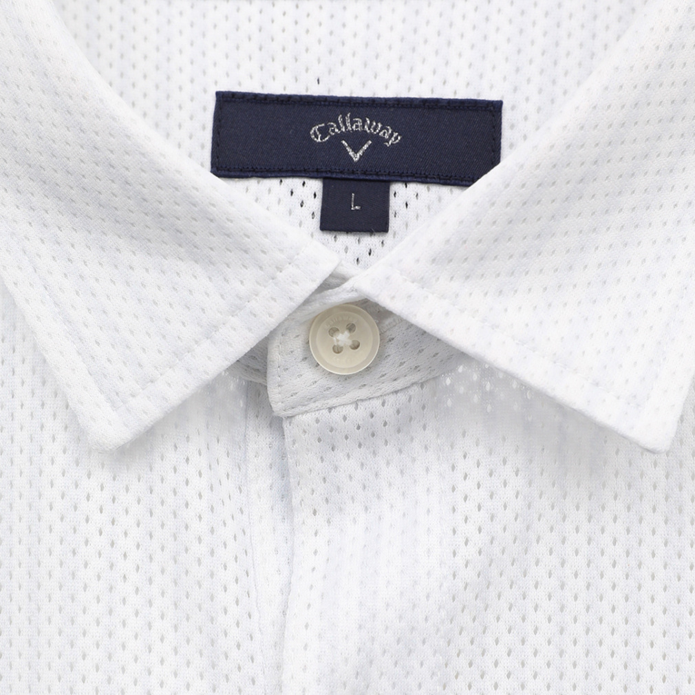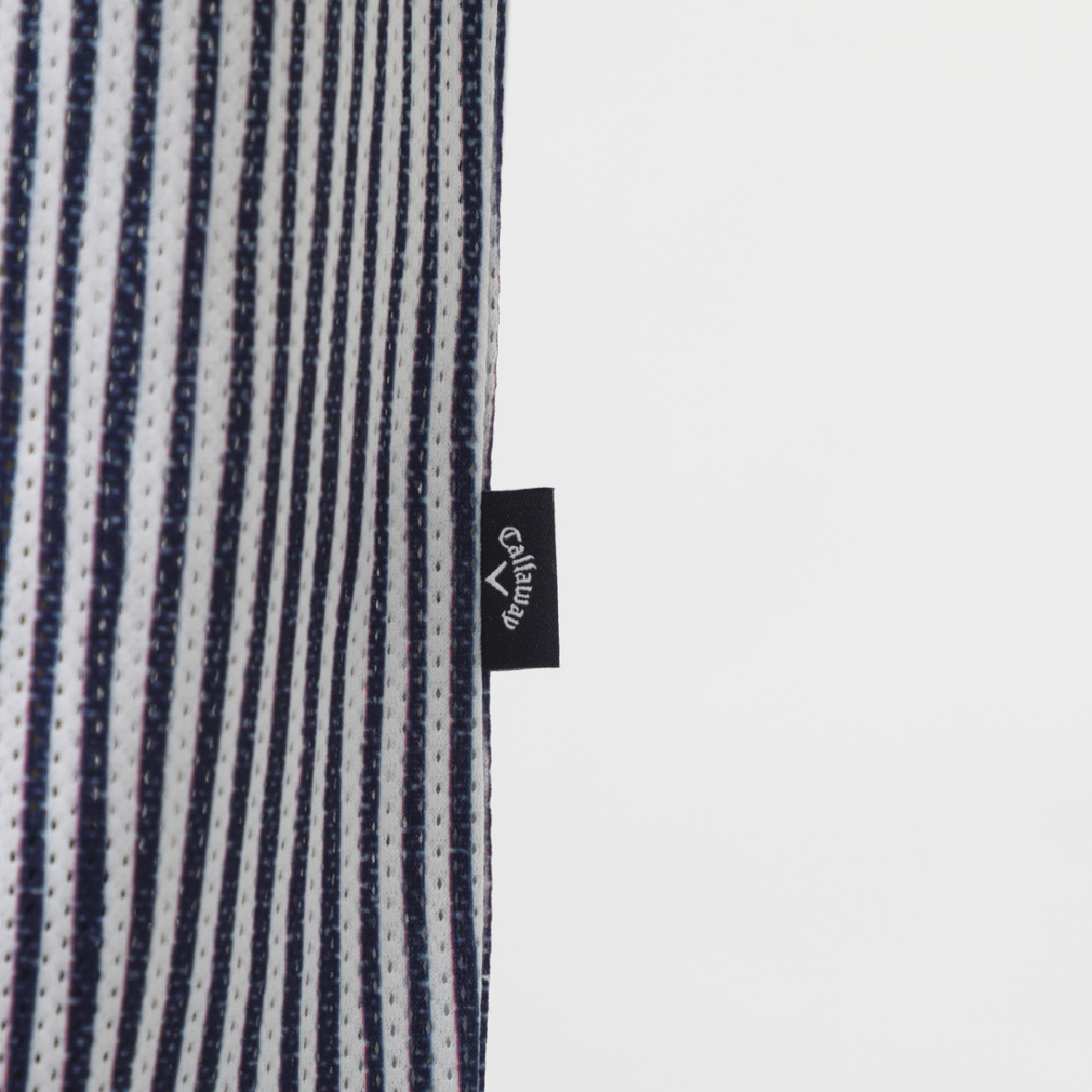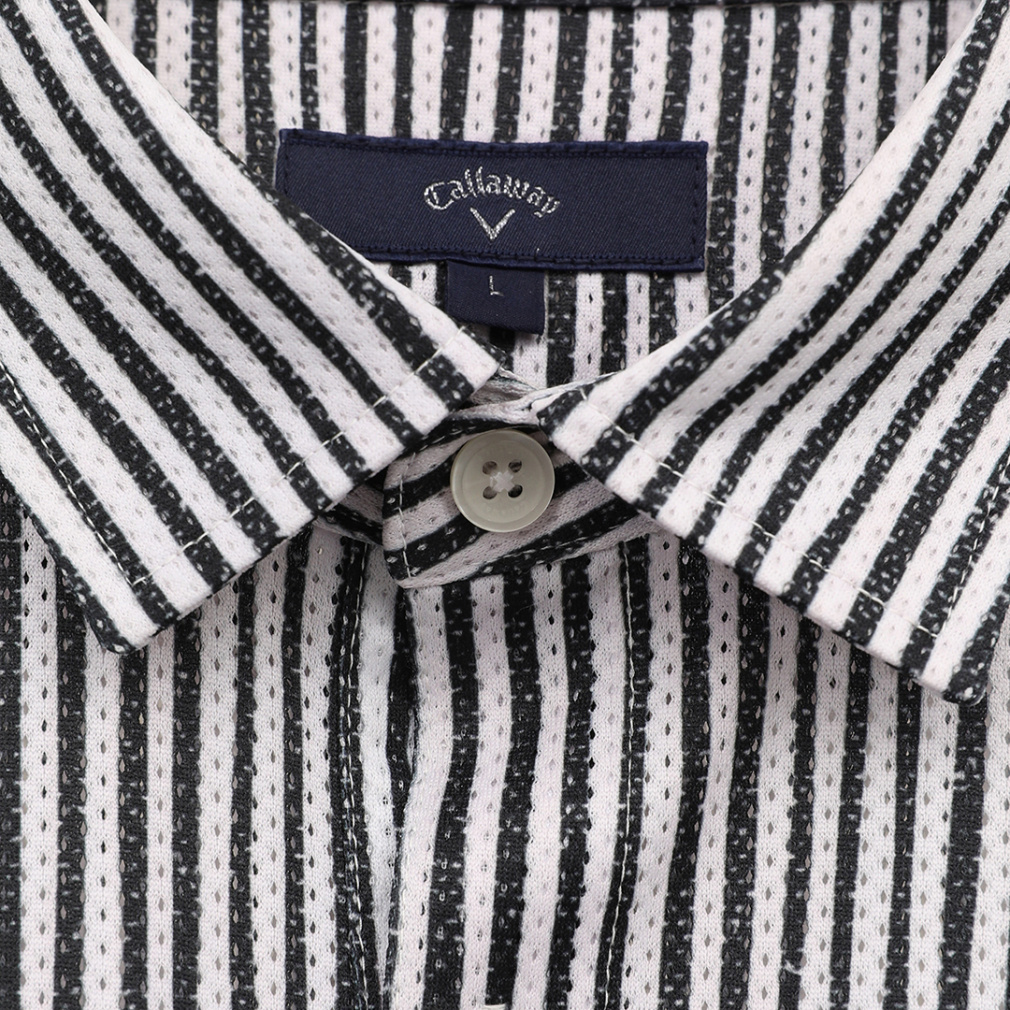 ◇風通りを良くする風穴がある素材「かざあなメッシュ」を使用した半袖シャツです。少しウェーブをかけたストライプをプリントしており、デザイン性とベーシックの調和が取れた柄になっています。肌面が凹凸感があるので、肌離れが良く着心地が良いアイテムです。