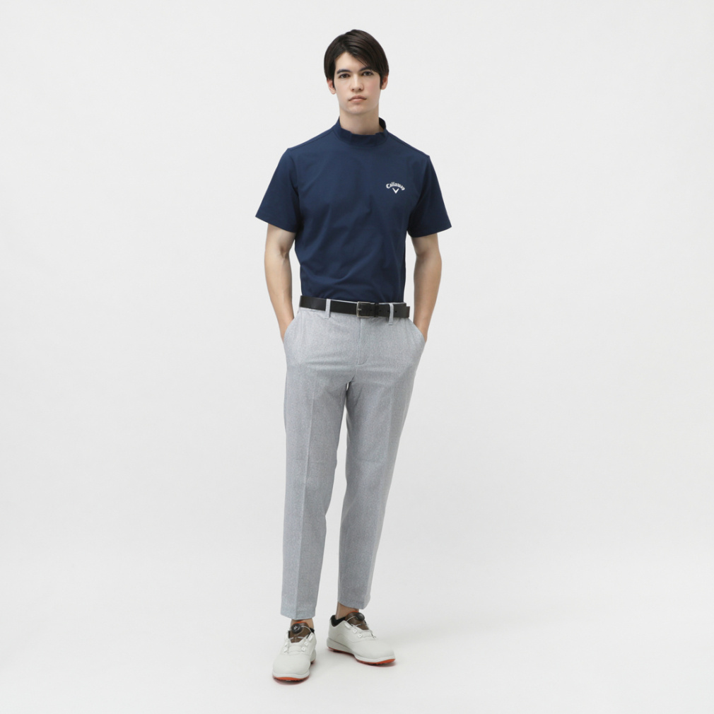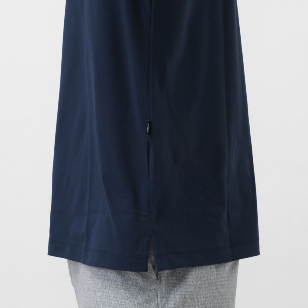 ◇裏面(肌面)がひんやりする接触冷感 、表面が-3℃遮熱する機能を持った「-3℃裏クール」 素材のモックネックです。Tシャツのように着用できるよう、天然ライクで安心感のある素材に仕上げています。水面に映ったように揺れたロゴプリントが背面にプリントされたカジュアルなアイテムです。