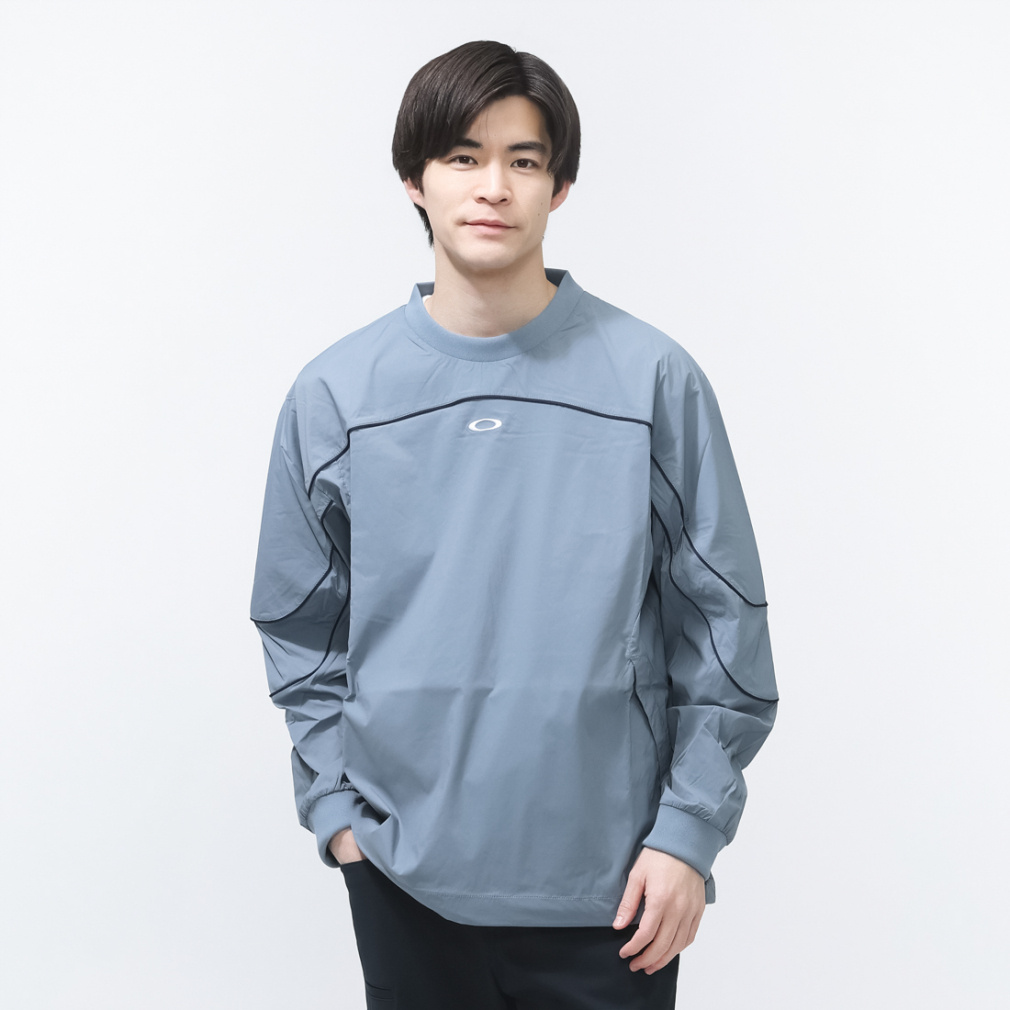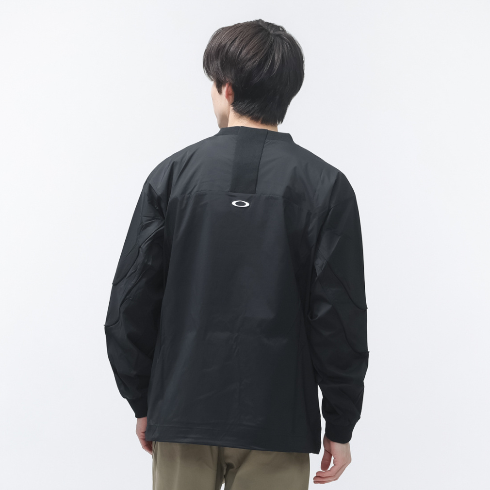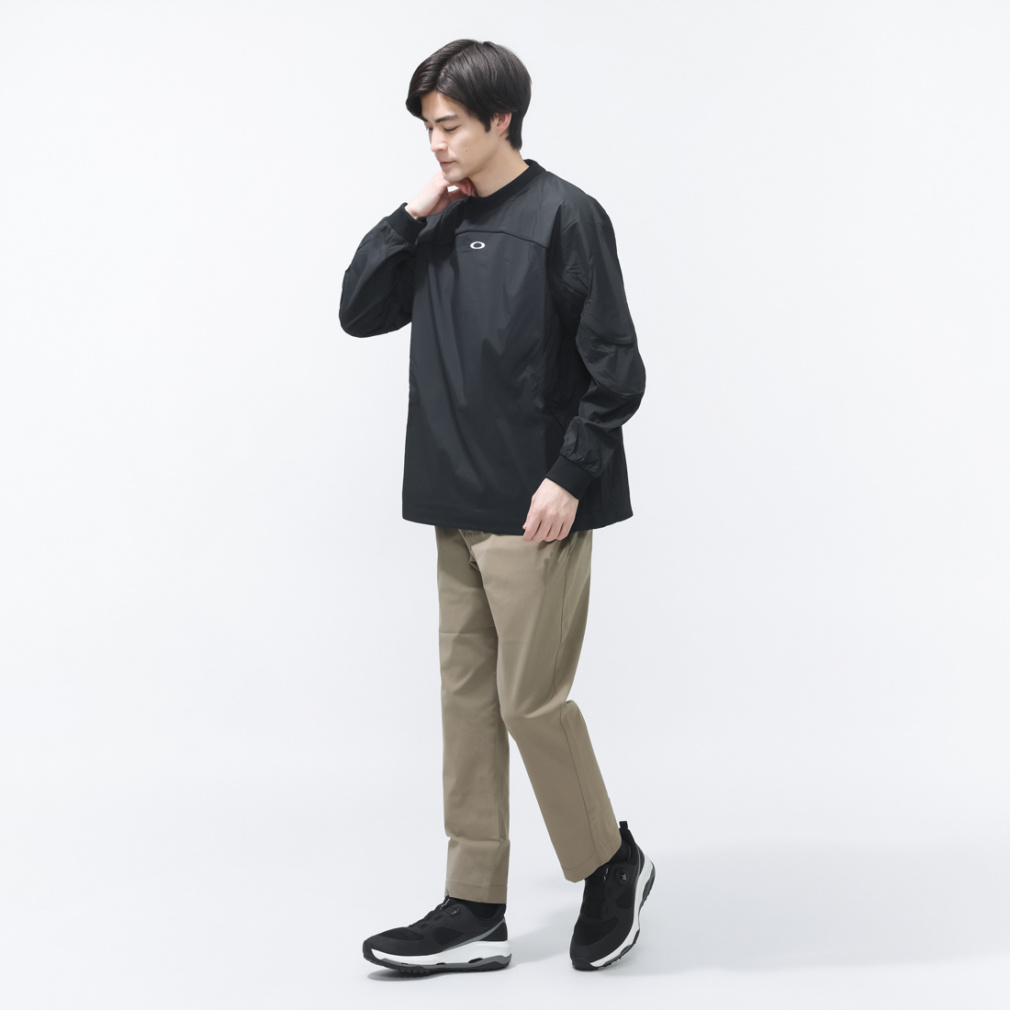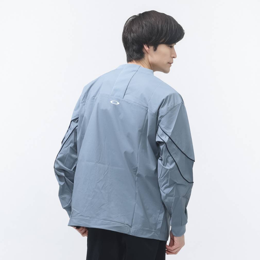 ◇春のプレーシーンで活躍する、ハリ感のあるリップ素材を採用したプルオーバーウインドジャケット。撥水性、高伸縮性、軽量性の機能を融合させた素材は快適なゴルフシーンをサポート。オーガニックシェイプデザインのカッティングを取り入れ、シンプルな見た目にオリジナリティーを演出。スポーティーさを抑えることで様々なシーンで着用可能にアレンジ。切替に沿ったパイピングが特徴で展開色によって配色を取り入れたデザイン。衿にはリブを採用したクルーネックデザインで、後ろ側のリブをヨークまで伸ばすことで着脱の際の不快を軽減し綺麗な衿を実現。
