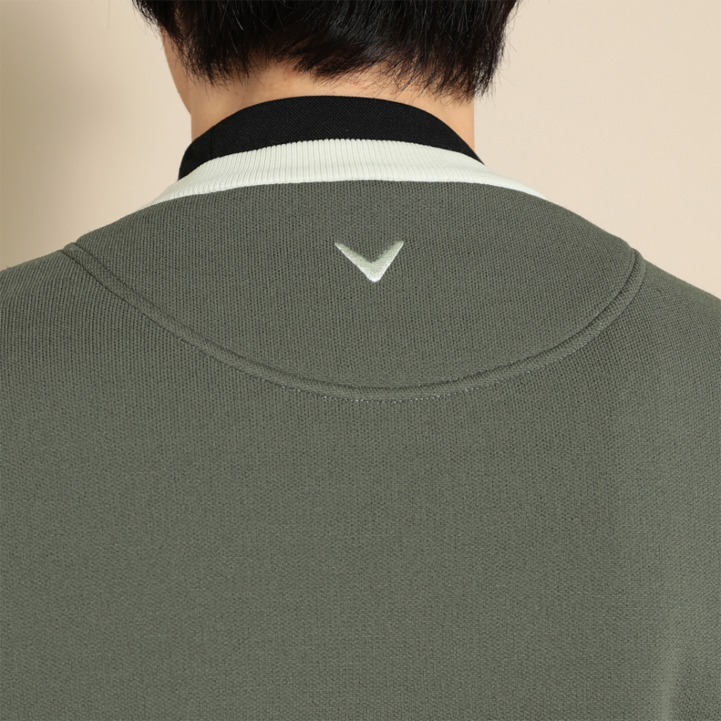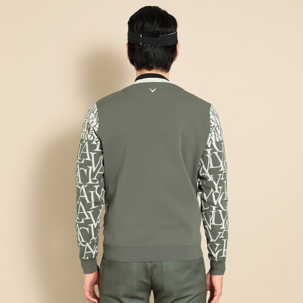 ◇CALLAWAYのタイポグラフィをランダムに、かつ胸部分で配色を切り替えた、新しいデザインのセーターです。