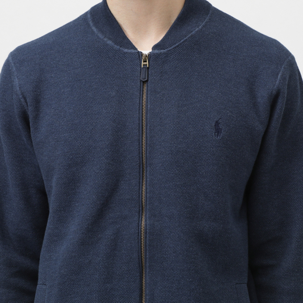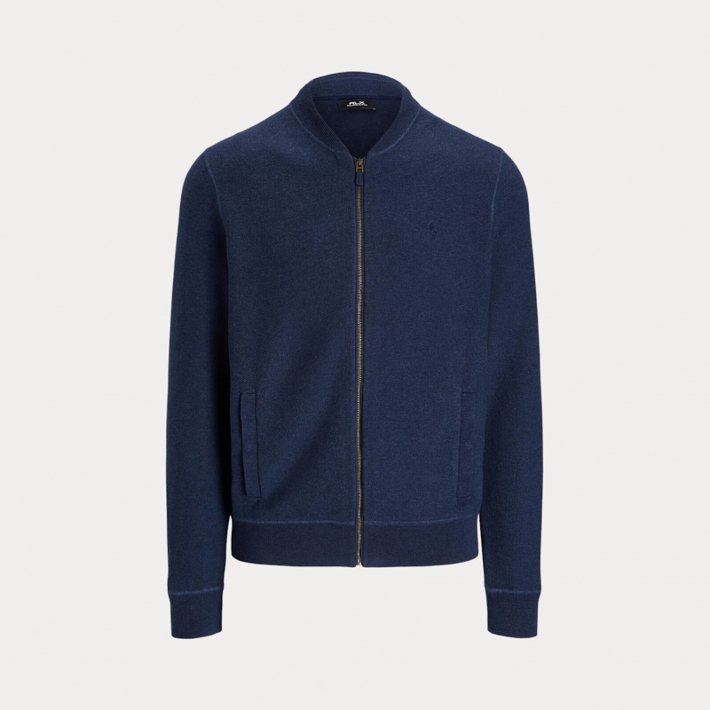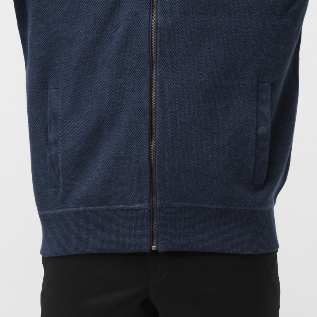 ◇リブニットのベースボールカラー / フェイクスエードのトリムをあしらったフルジップフロント / スエードのジッパープル。
