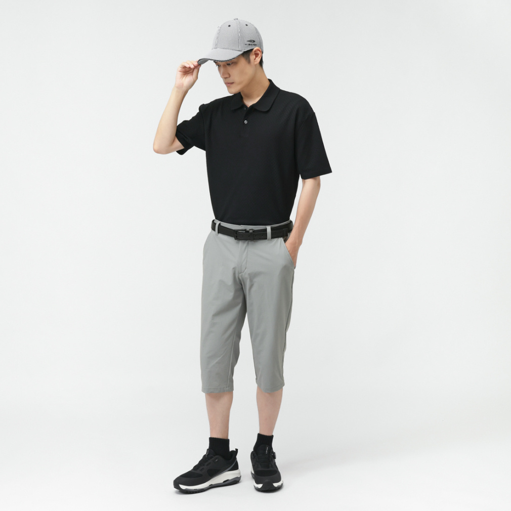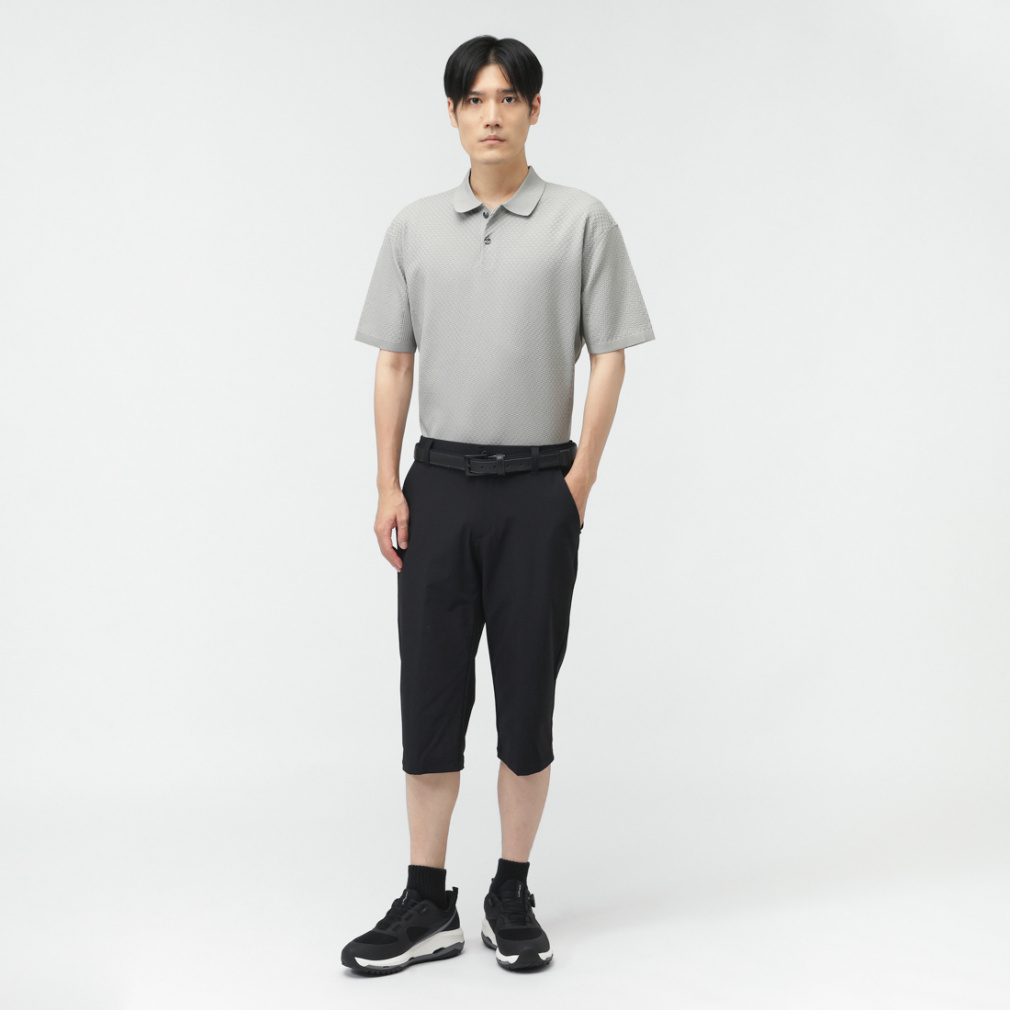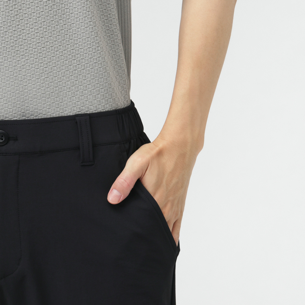 ◇スッキリとした見た目が特徴の7部丈パンツ。裾にかけて細くなる、足さばきの良いテーパードシルエット。縦横に伸びが良く、アドレスやスウィング、ボールのピックアップなどゴルフ特有の動きにもストレスを感じにくい4WAYストレッチ素材。機能:撥水・4wayストレッチ・UVカット