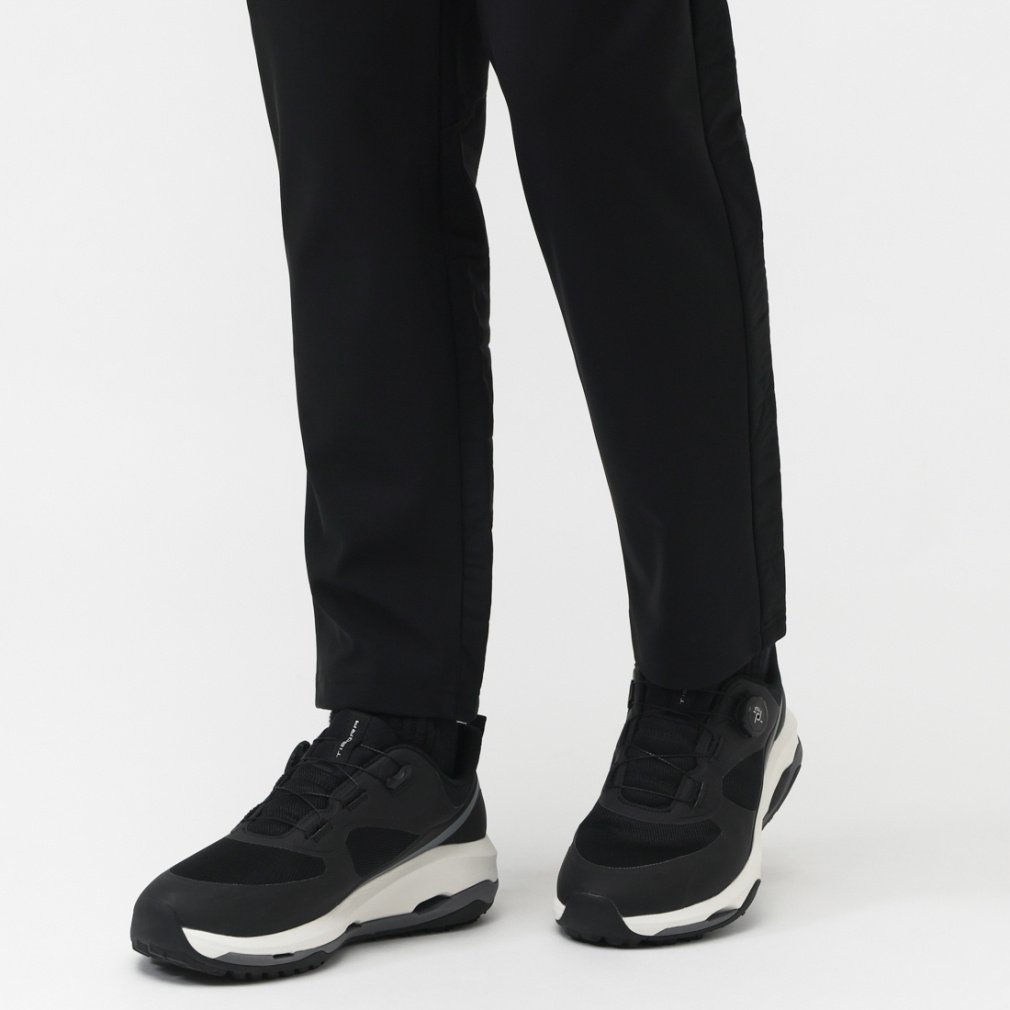 ◇裏起毛素材に中わたを部分的に配置したハイブリッドロングパンツ。