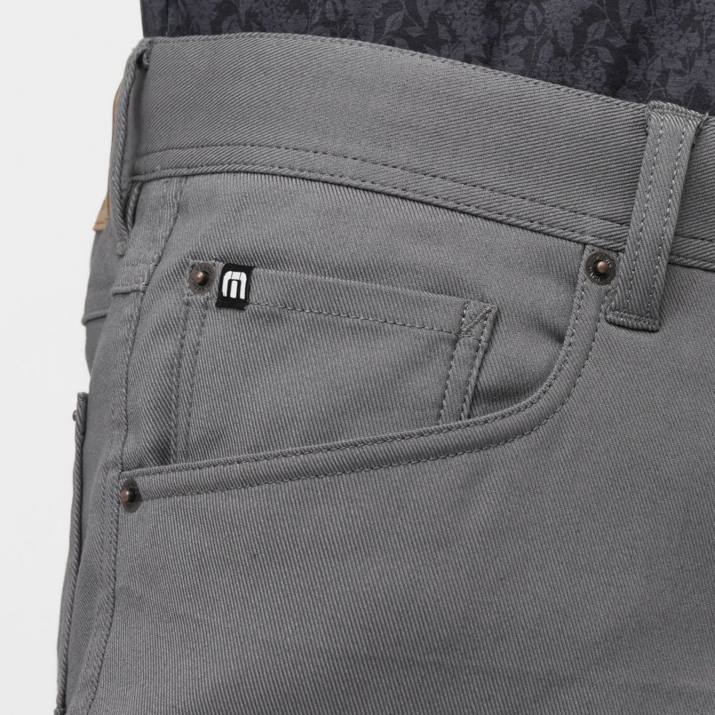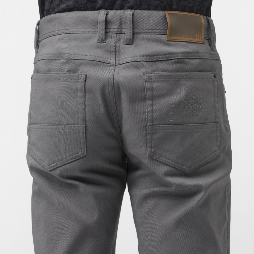 ◇TRAVISMATHEW定番のカルゼストレッチ5ポケットパンツ。非常にソフトな風合いの4wayストレッチ素材で秋冬通して快適な履き心地のスリムパンツ。後ろポケットのシーズンモチーフの刺繍がポイント。