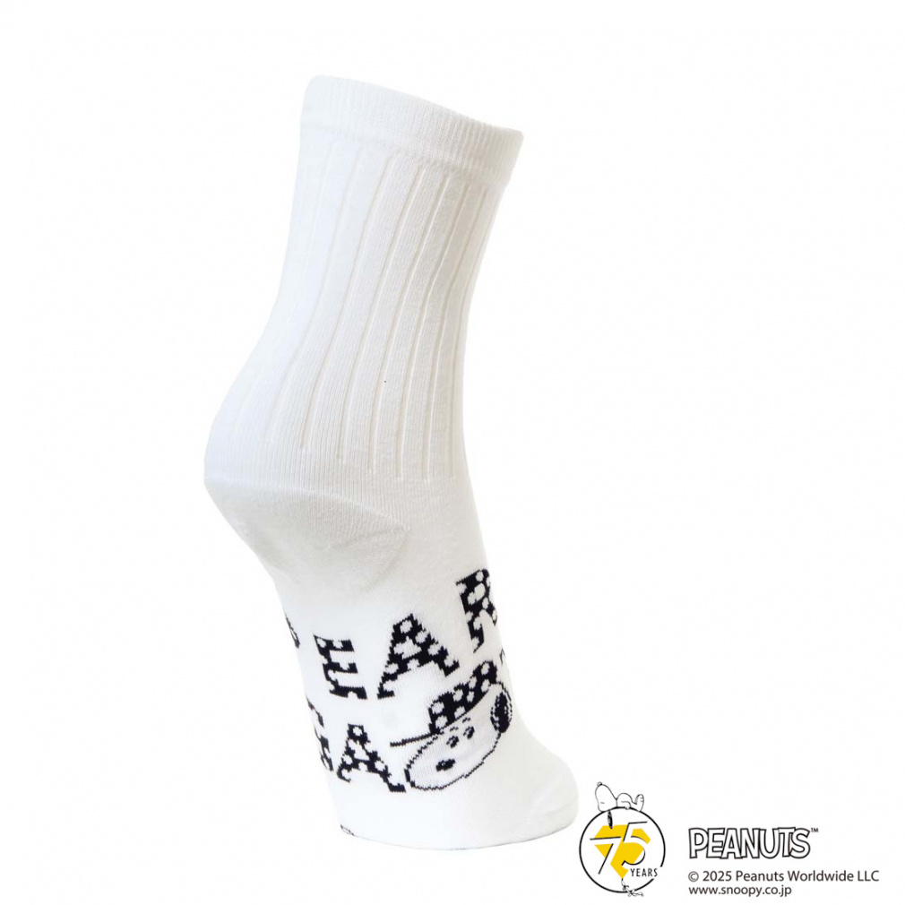 ◇ドット柄を調和させてPOPなインパクトを与えた、SNOOPYミドルソックス。