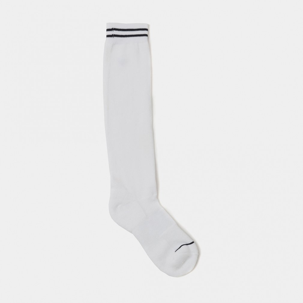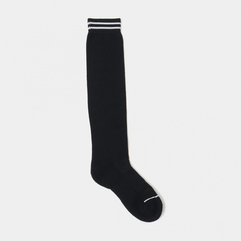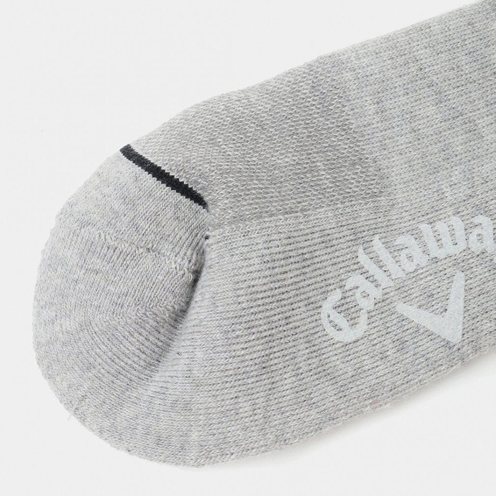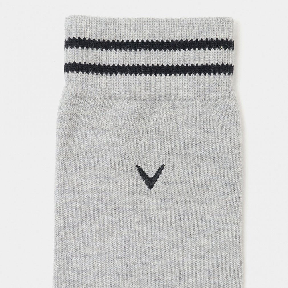 ◇キャロウェイシェブロン刺繍を施した定番ハイソックス。適度にしっかりした厚みのある足底サポートを配置し、ズレにくく、足底パイルでクッション性のある快適性を高めたはき心地。