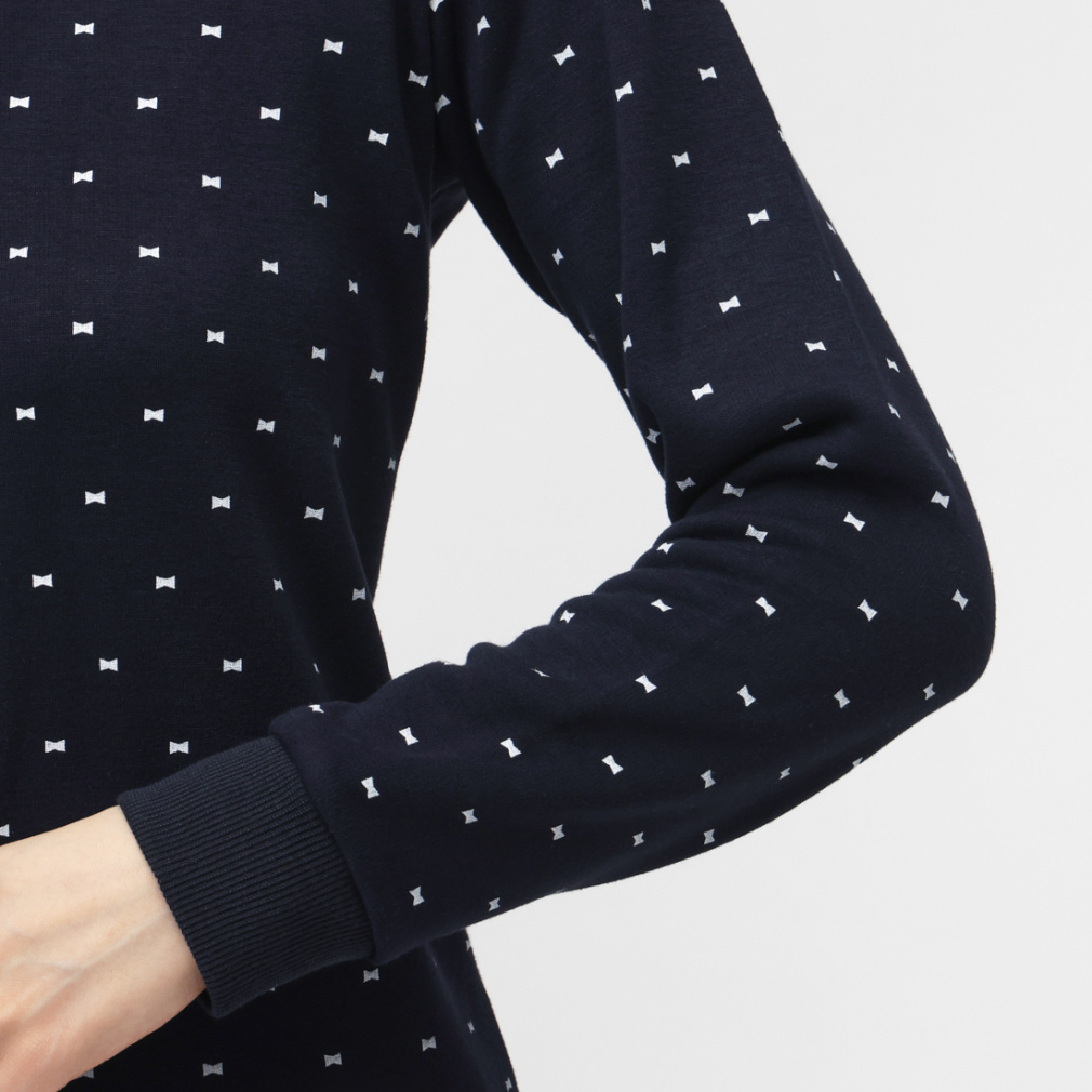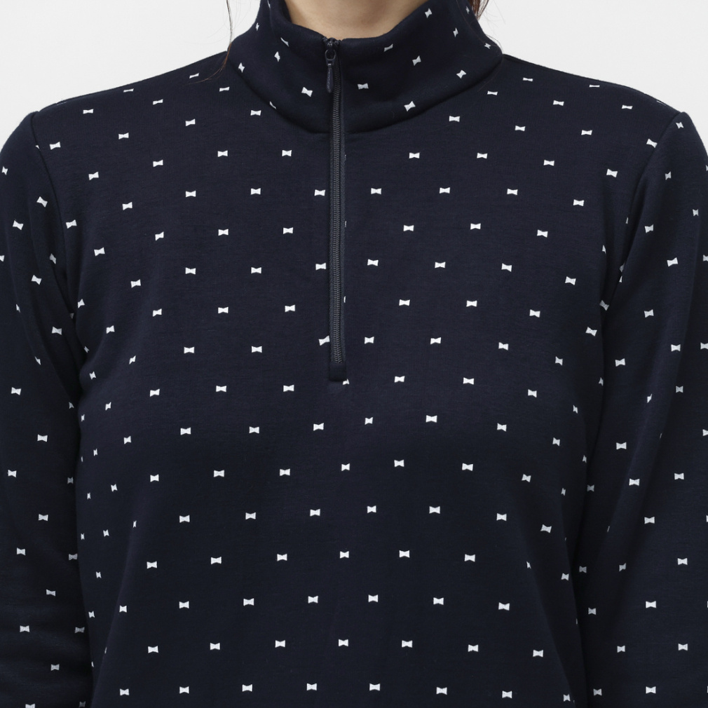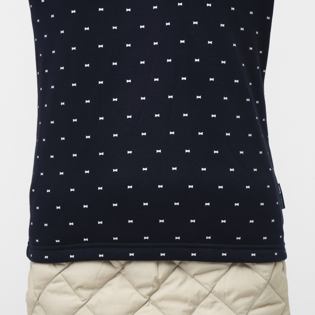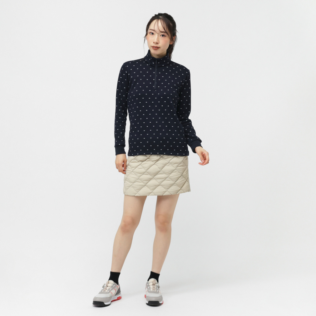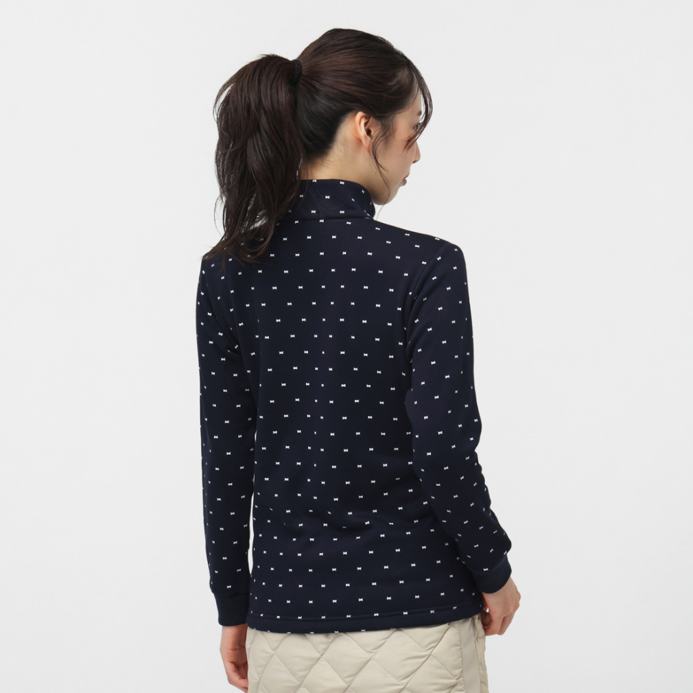 ◇寒い時期に重宝する、+5℃以上の発熱性を持った長袖シャツ。リボンモチーフの飛びプリント柄。生地裏面に柔らかな毛足のあるシャギー素材を使用。伸びもよくスイング時のストレスを感じにくいストレッチ機能付き。ハイネック+袖先リブ仕様で冷気の侵入も防ぎます。脇と袖下に静電気防止糸を使用し、静電気の発生を軽減します。