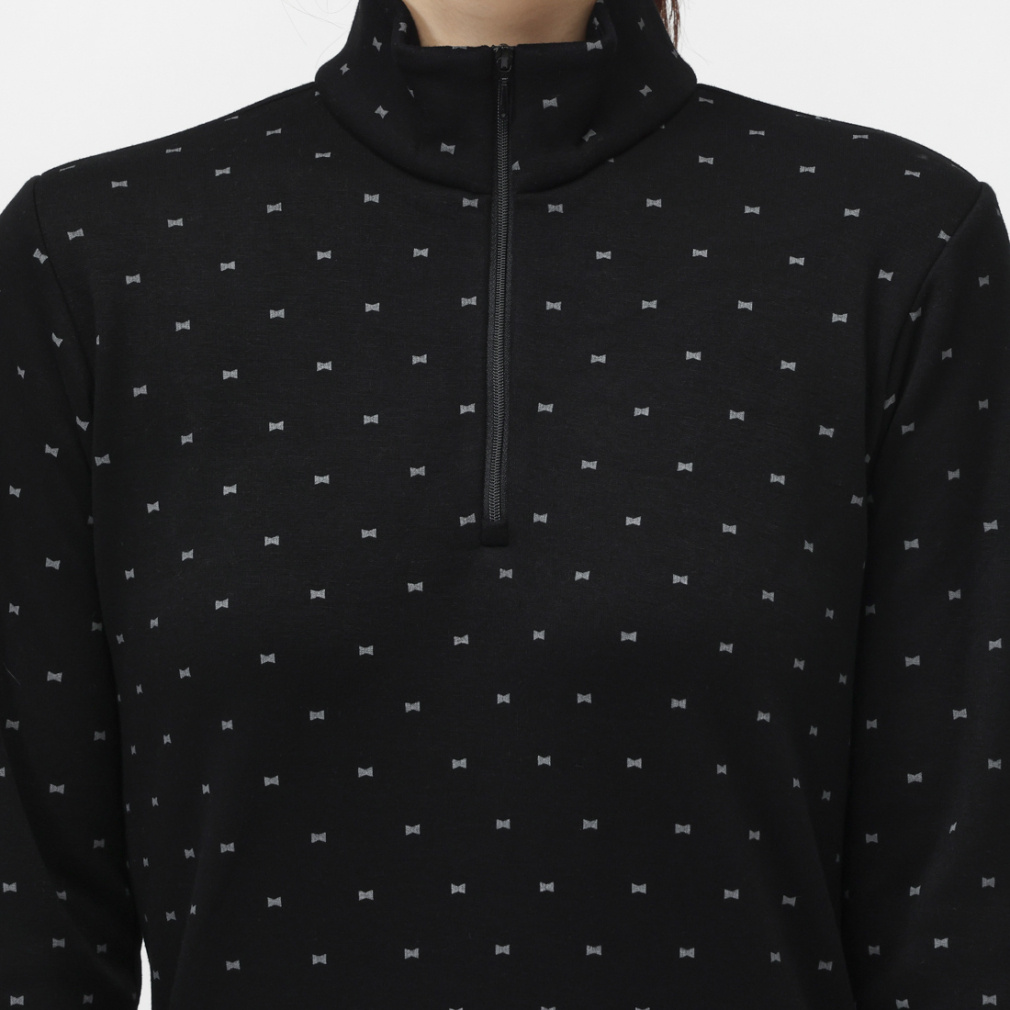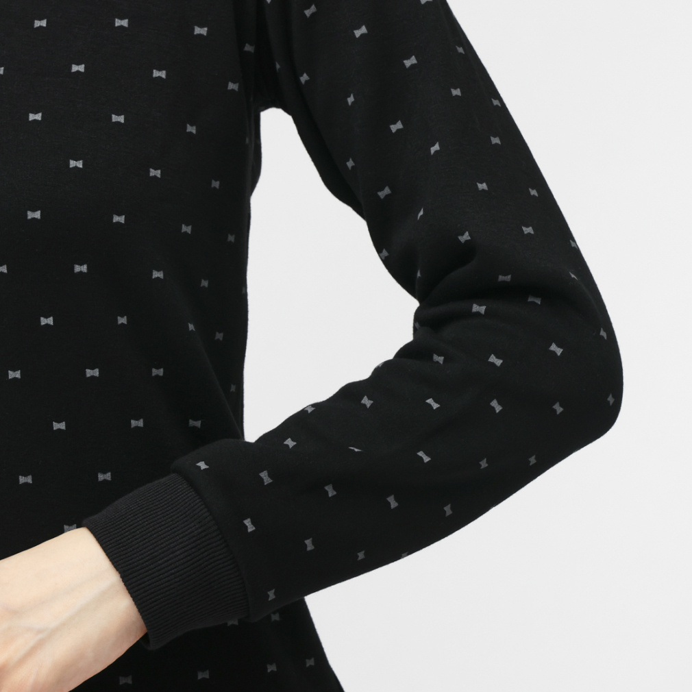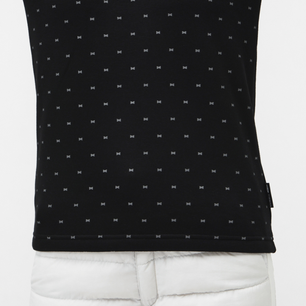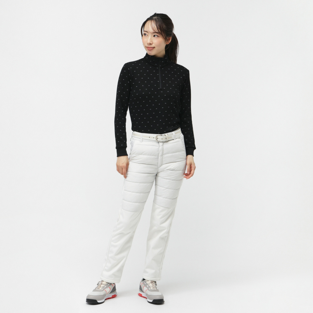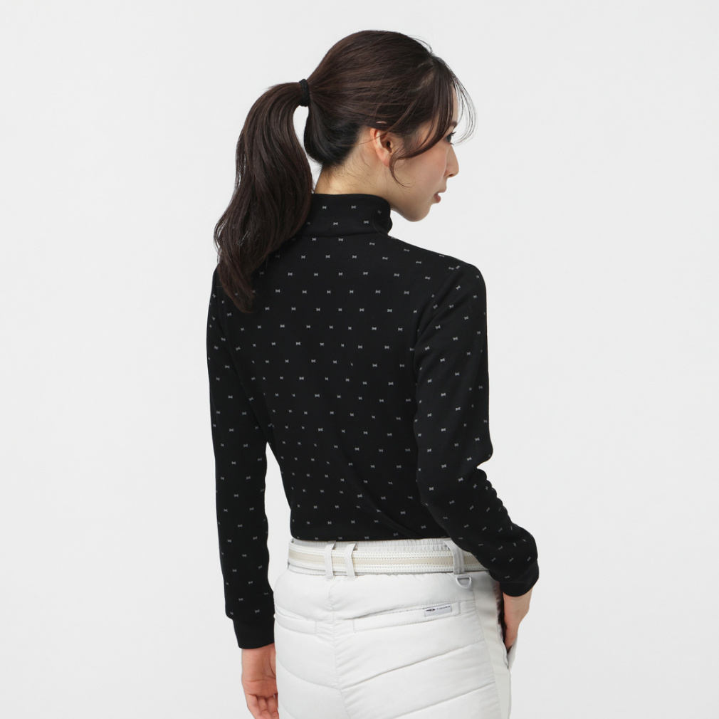 ◇寒い時期に重宝する、+5℃以上の発熱性を持った長袖シャツ。リボンモチーフの飛びプリント柄。生地裏面に柔らかな毛足のあるシャギー素材を使用。伸びもよくスイング時のストレスを感じにくいストレッチ機能付き。ハイネック+袖先リブ仕様で冷気の侵入も防ぎます。脇と袖下に静電気防止糸を使用し、静電気の発生を軽減します。