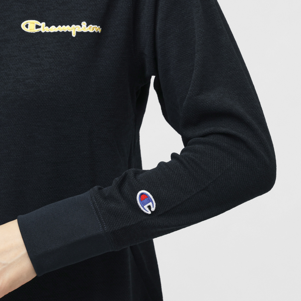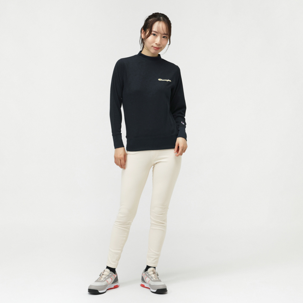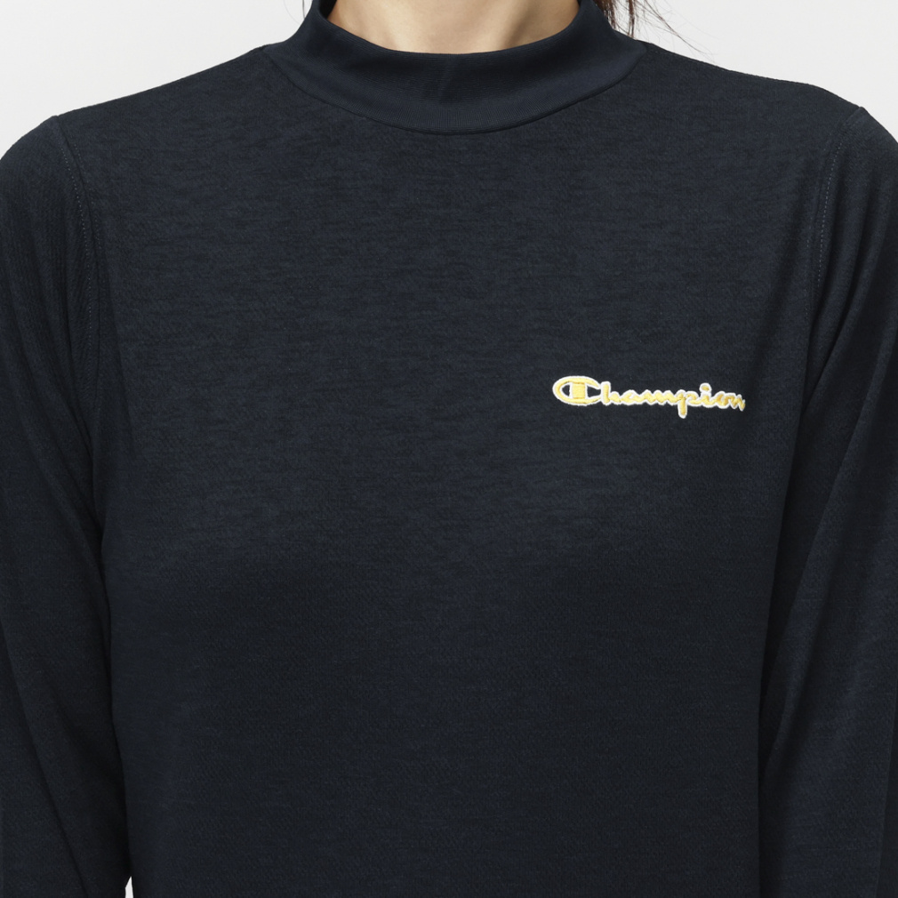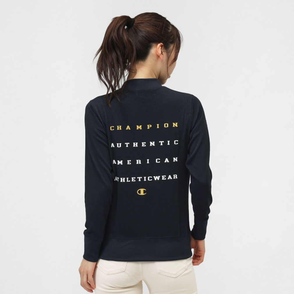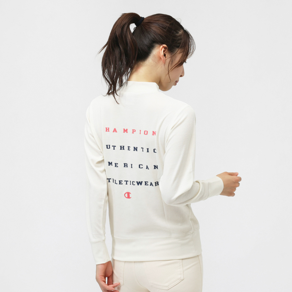 ◇ドライかつソフトな肌触りと独特な杢感のある表面感で、シワが寄りにくく、速乾性、UVカット機能を備えた素材を使用したロングスリーブモックネックシャツです。襟、袖口、裾はリブ仕様。袖口はグリップ周りをすっきりさせたデザインで、首に沿うように作り込んだ襟はストレッチ性があるので程良いフィット感の快適な着心地です。薄手の裾はお好みに合わせてタックインすることも、スウェットシャツのようにタックアウトして通気性を確保することもできます。左胸に入れた縁取りのあるChampion(チャンピオン)ロゴは刺繍で、背中の「CHAMPION」、「AUTHENTIC AMERICAN ATHLETICWEAR(オーセンティック アメリカン アスレチックウェア)」とCロゴでデザインした大胆なグラフィックはラバープリントで入れています。