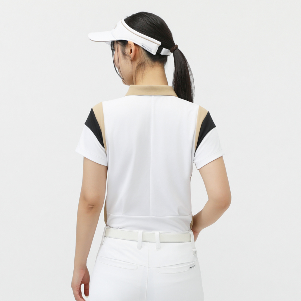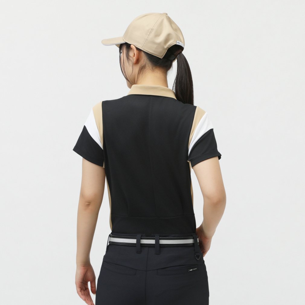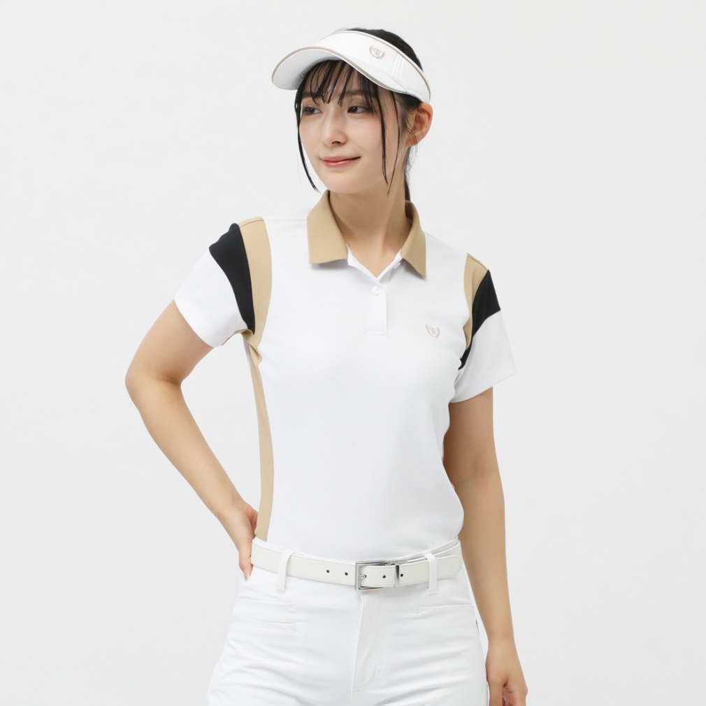◇遮熱機能とUPF50+機能のある素材を使用し、紫外線対策をしながら暑い時期でも快適なプレーをサポートするポロシャツ。異なるカラーの生地を使用した、動きのあるカッティングが特徴。
