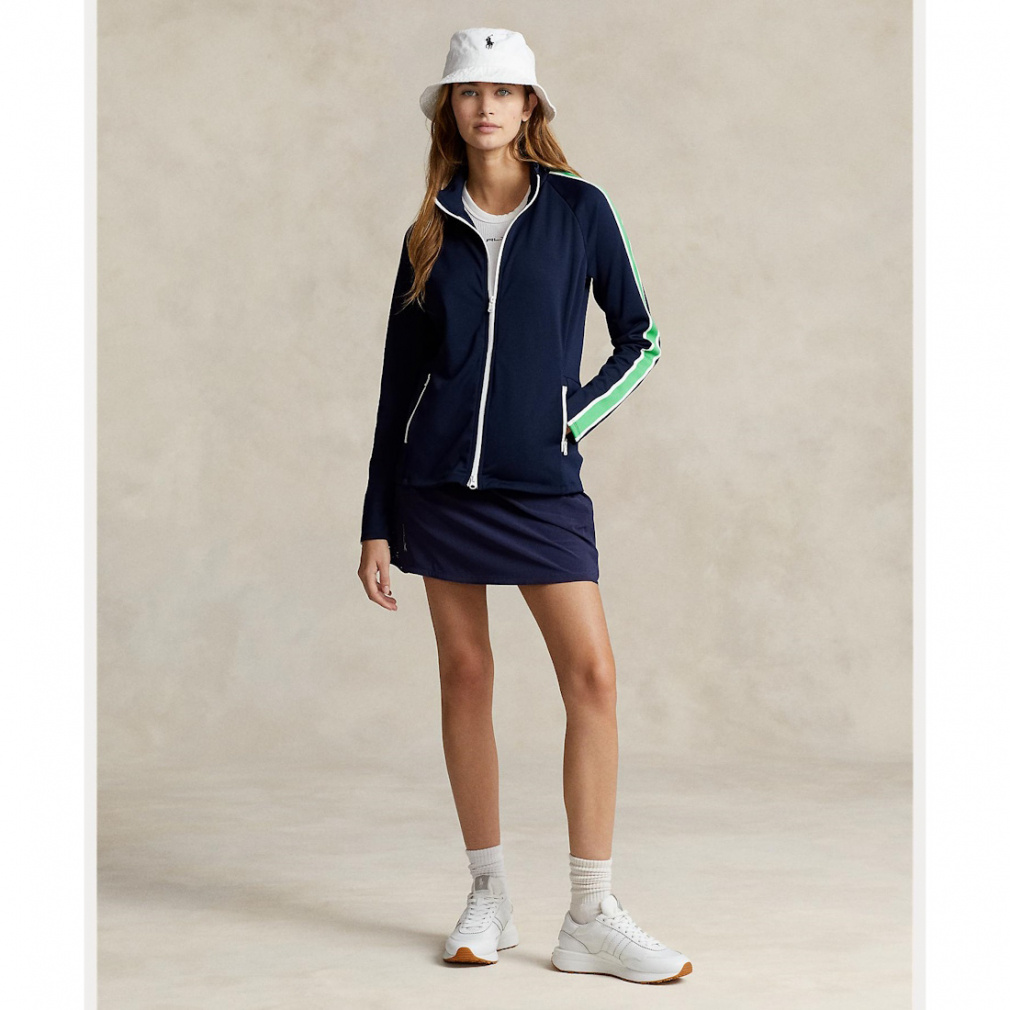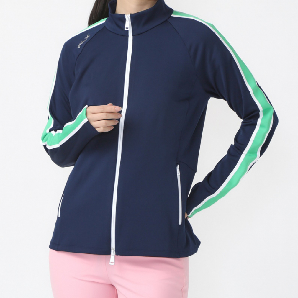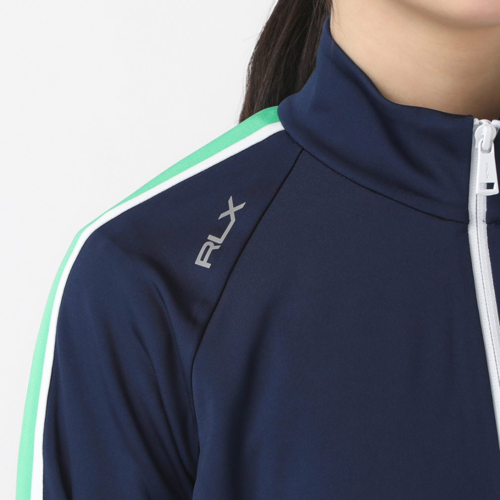 ◇テーパードシルエットに仕立てたインターロックのハイネックジャケット。フロントの2ウェイジッパーと袖に施したコントラストの効いたトリムが特徴。右肩にあしらったRLXのロゴでアクセントをプラス。・テーラード フィット ゴルフ ポロシャツ:わずかにテーパードしたシルエットを採用したスリムフィット・ハイネック / 2ウェイジッパーのフロント・長袖のラグランスリーブ / フロントウエストにジップポケット2つ・前後にプリンセスライン / 切り替えデザイン・右肩にRLXのプリント