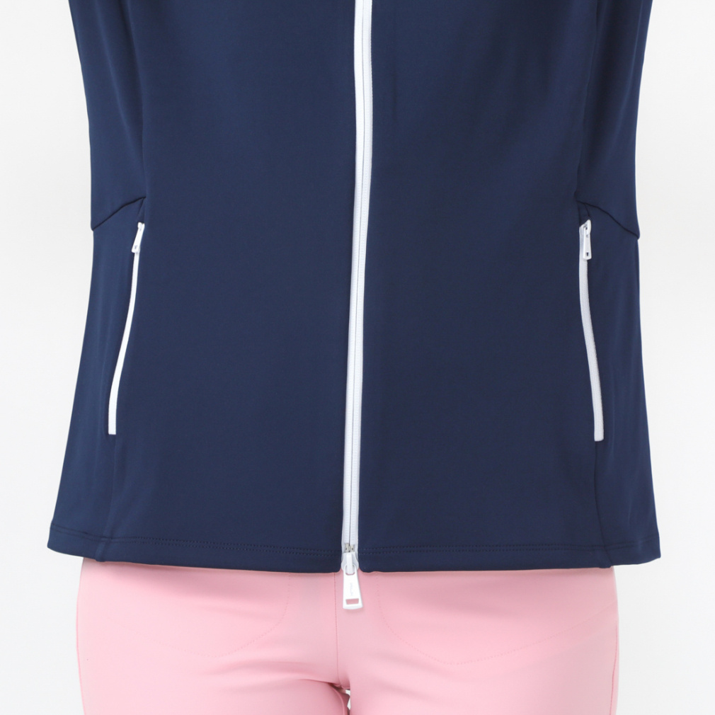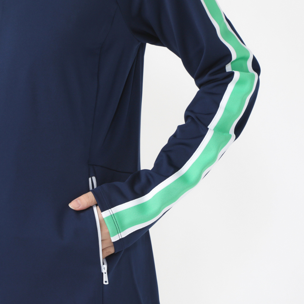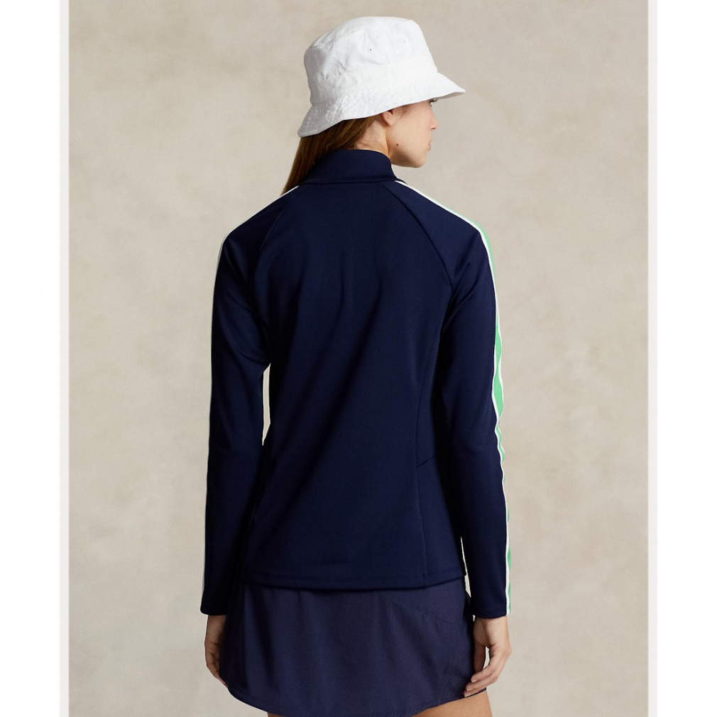 ◇テーパードシルエットに仕立てたインターロックのハイネックジャケット。フロントの2ウェイジッパーと袖に施したコントラストの効いたトリムが特徴。右肩にあしらったRLXのロゴでアクセントをプラス。・テーラード フィット ゴルフ ポロシャツ:わずかにテーパードしたシルエットを採用したスリムフィット・ハイネック / 2ウェイジッパーのフロント・長袖のラグランスリーブ / フロントウエストにジップポケット2つ・前後にプリンセスライン / 切り替えデザイン・右肩にRLXのプリント