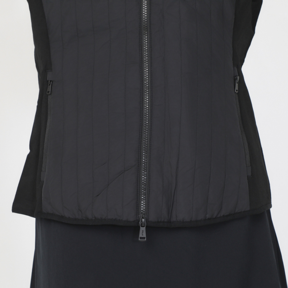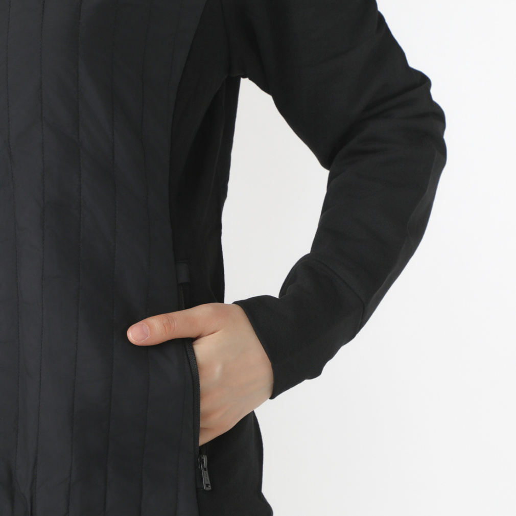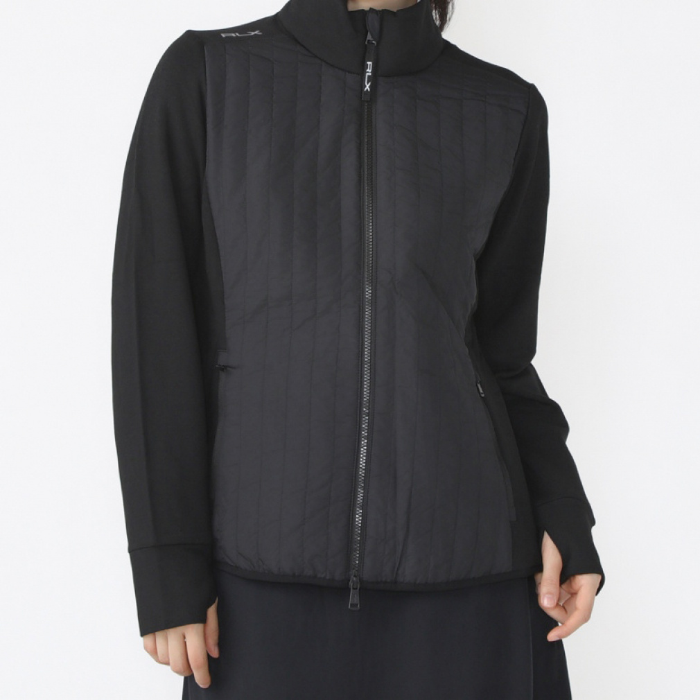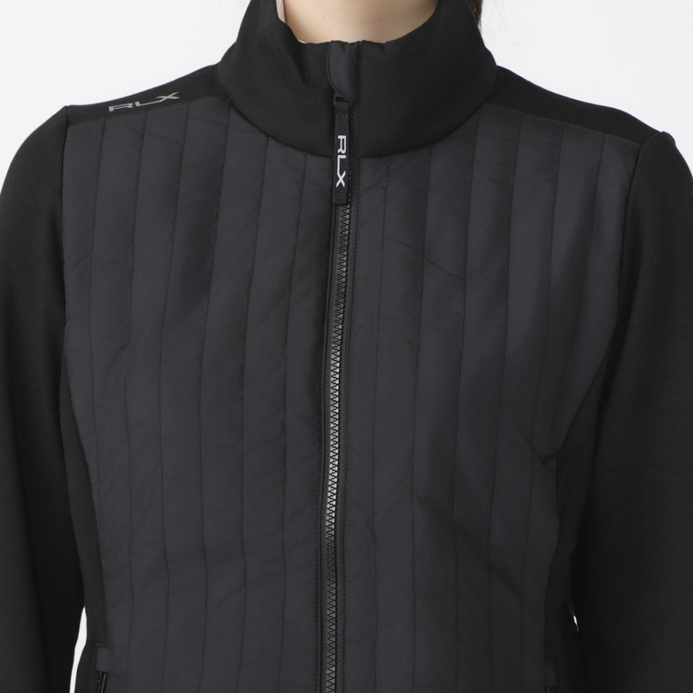 ◇ライトウエイトなキルティングを前身頃に使ったフルジップシャツ。1インチ幅のキルティングストライプジッパー付きのハンドポケット付き袖口に親指用のホールを備えている