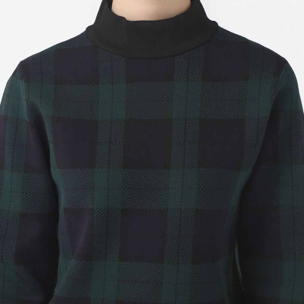 チェック柄モックネックセーター チェック柄 UV マシンウォッシャブル TR-1S2624H