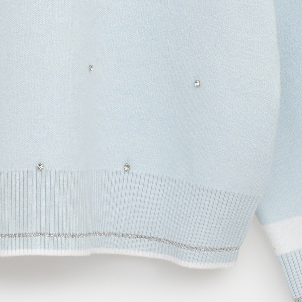 ◇レーヨンのしっとりとした手持ち感が特徴のセーターです。フロントにCLWYの文字をスクエアに組み合わせたロゴをジャカードで表現。さらにクリスタルのラインストーンをちりばめて付加価値高くデザインしました。