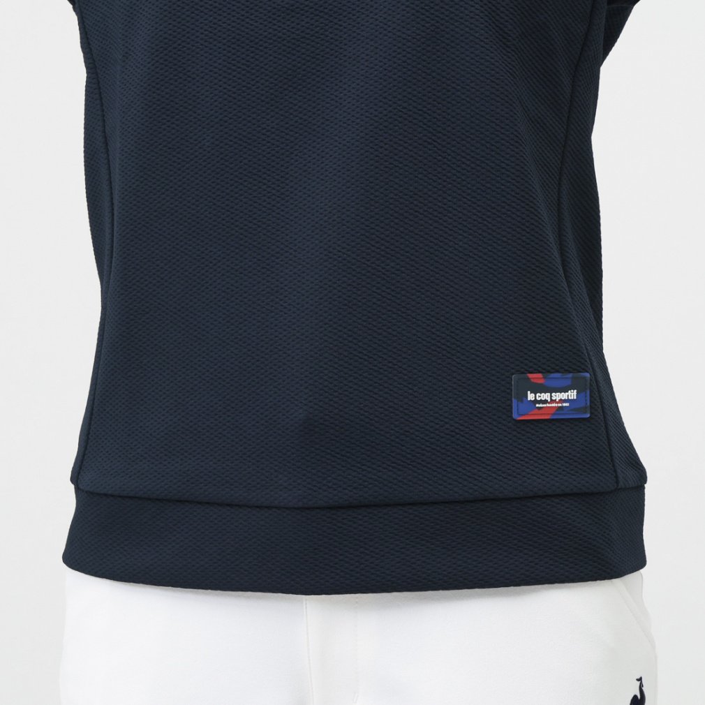 ◇肩甲骨周りにゆとりを持たせた「エールフォルム」カッティングを採用。腕を上げても裾が上がりづらく、快適なプレーをサポートします。