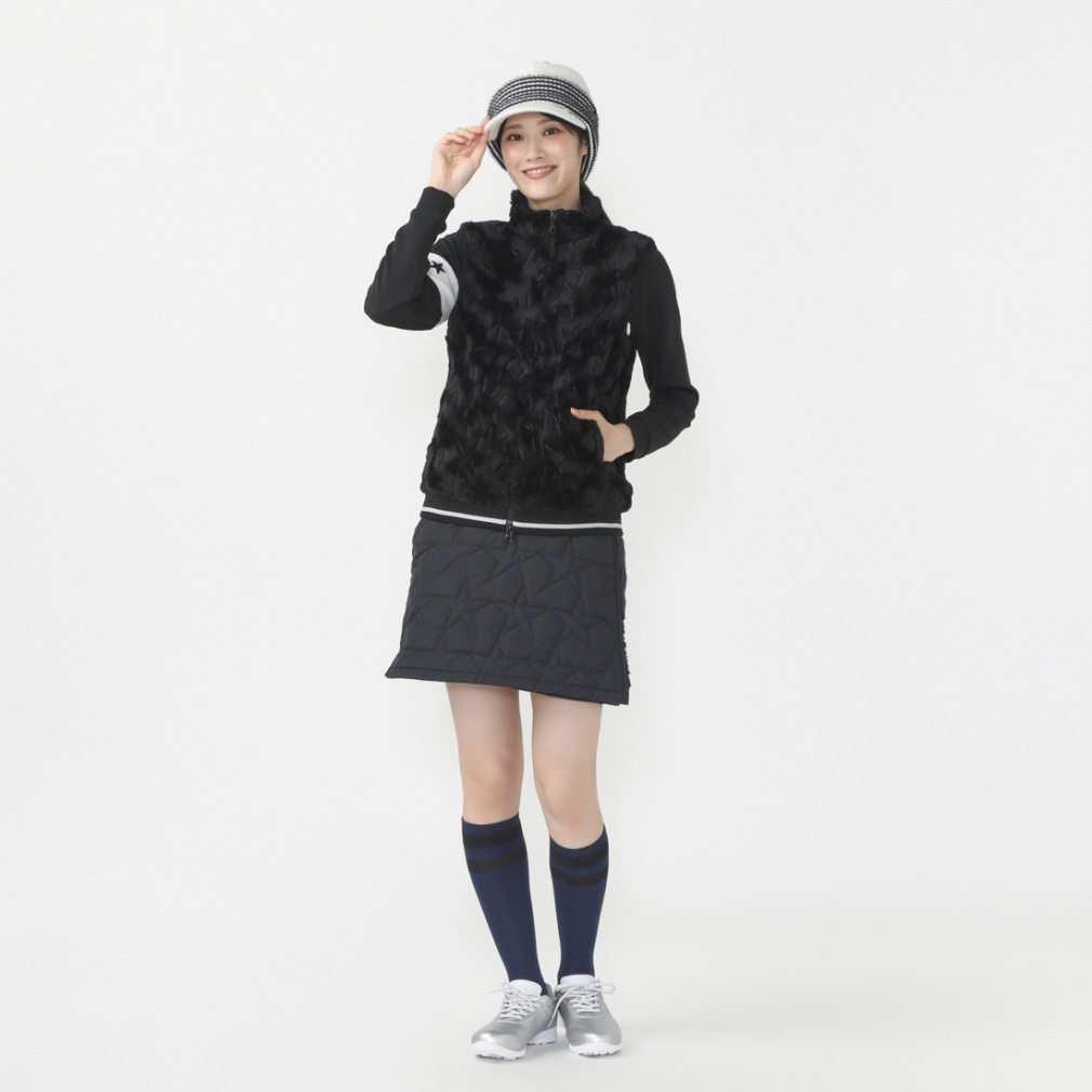 ◇寒い時も安心、かわいい中わた星柄キルト巻きスカート