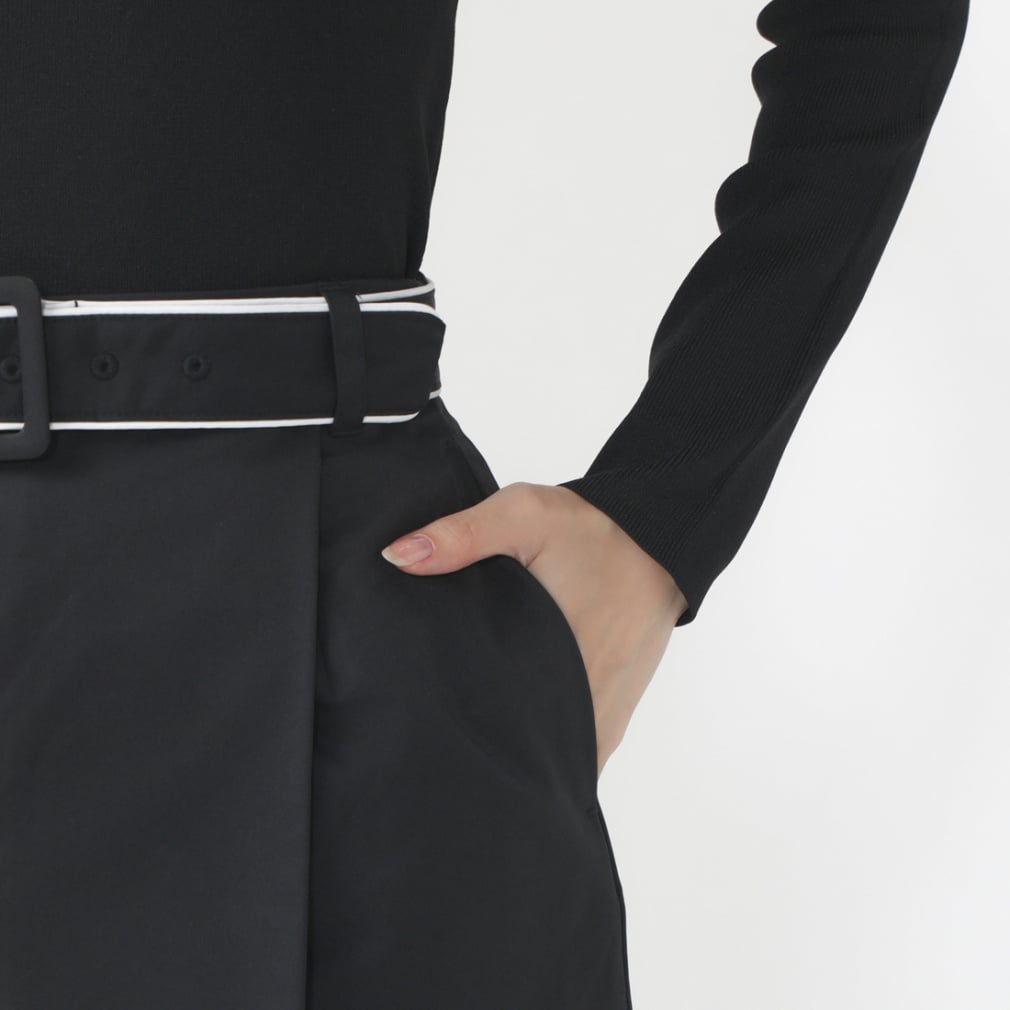 ◇サイドに大胆に入れたグリッターロゴがポイントのラップデザインスカート。細かなラメをたっぷりと使い、ぷっくり仕上げたロゴは、光が当たるたびキラキラ輝き、気分まで盛り上げてくれる1着です。スカートはラップ風のデザインなのでタイトシルエットでも足捌きがよく、動きやすいのも嬉しいポイント。裏地がカットソー素材のショートパンツ仕様なので、ダイナミックな動きも安心です。ベルトはお好みで外しても◎スカートのウエストは後ろがゴム仕様なので体の動きに合わせて伸縮してくれます。後ろにはポーチを掛けられるDカン付き。サイドと後ろにポケット付きです。