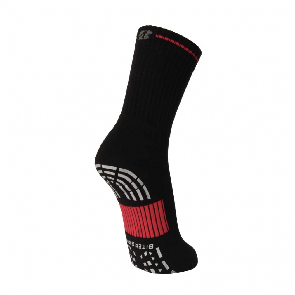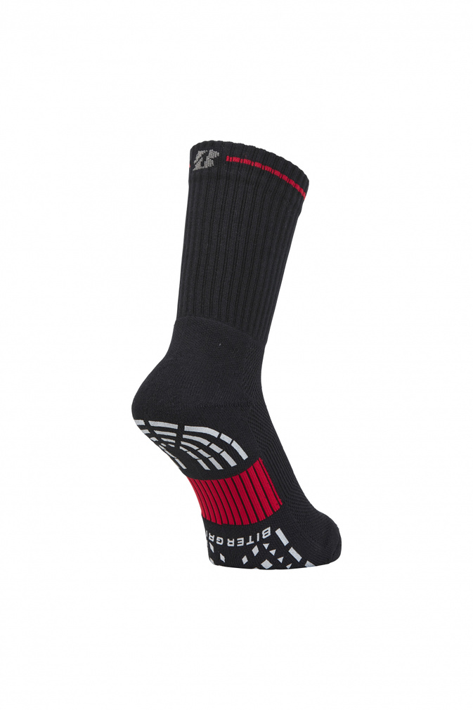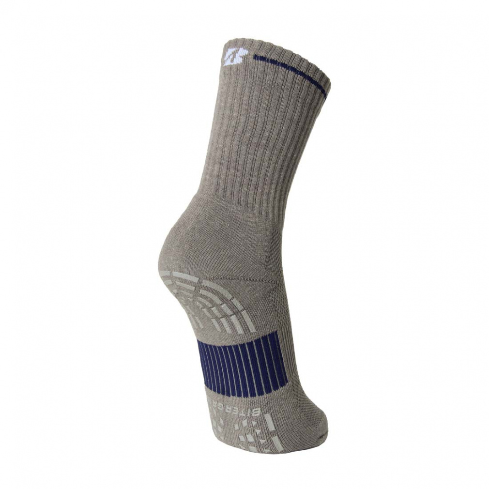 ◇スパイクレスシューズ「ゼロ・スパイク バイター」シリーズの高いグリップ力をイメージ。足裏にシリコーン加工を施すことで靴の中で滑りにくい仕様にしたソックス。レギュラー丈。土踏まずサポート。