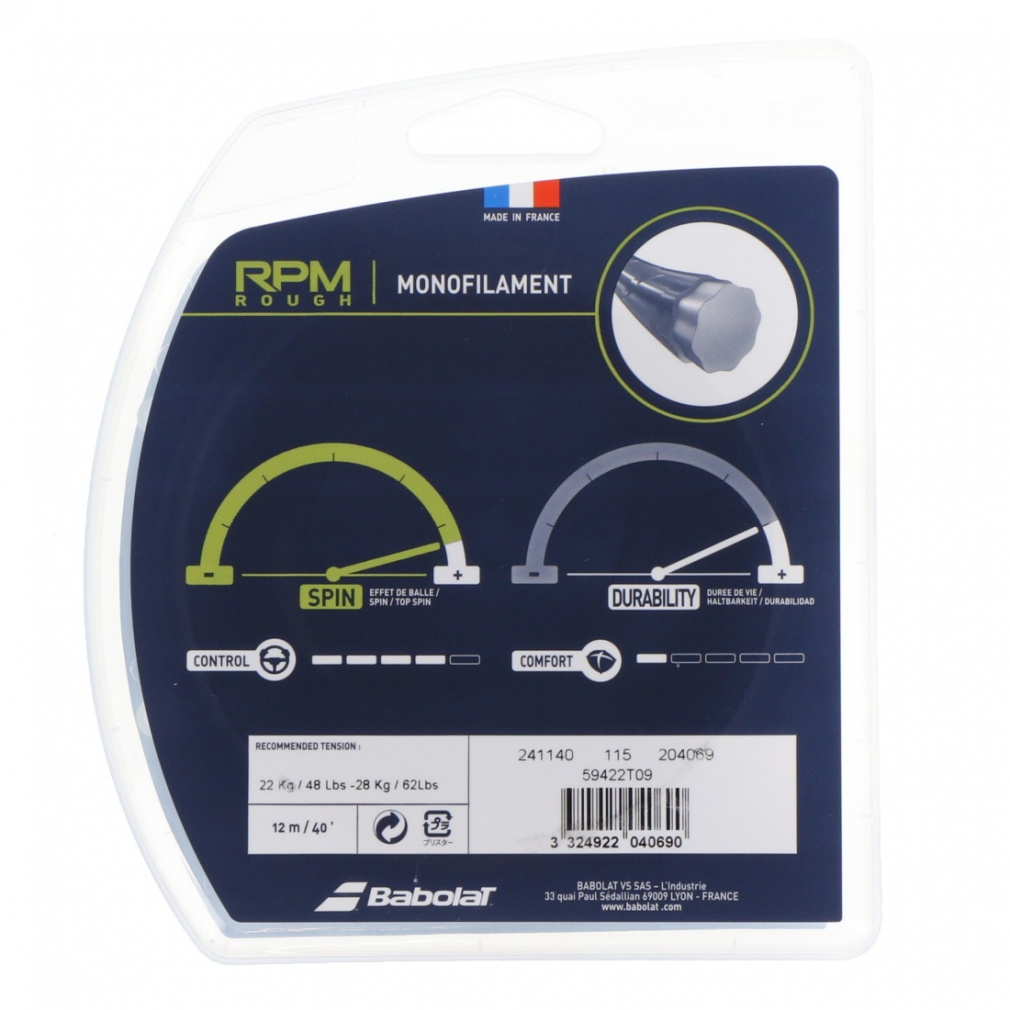コポリエステルを使用したRPMシリーズのモノフィラメントストリングは、非常に高い耐久性を備えています。 強いストロークを打つプレーヤーに最適です。 エンボス加工されたロゴで更に摩擦を抑え、より耐久性を高めます。
