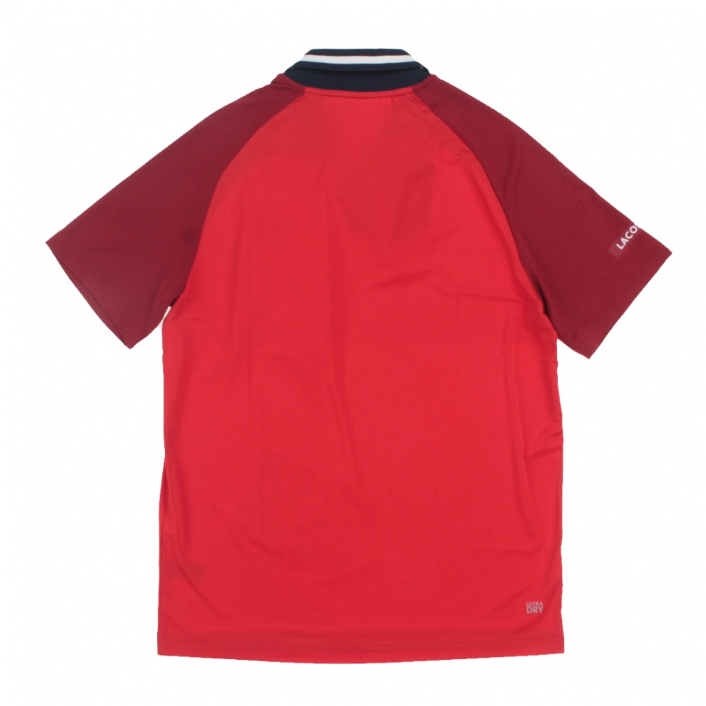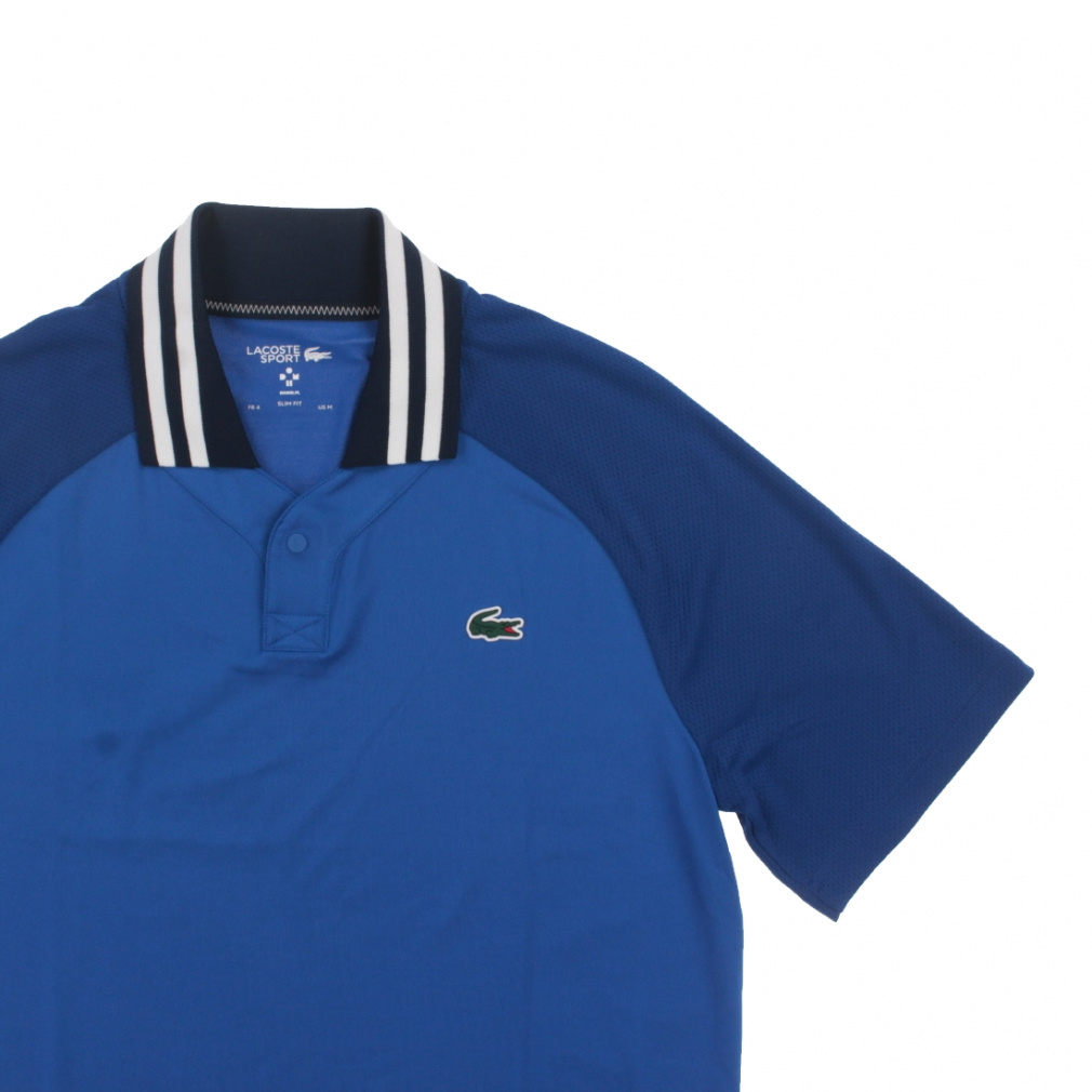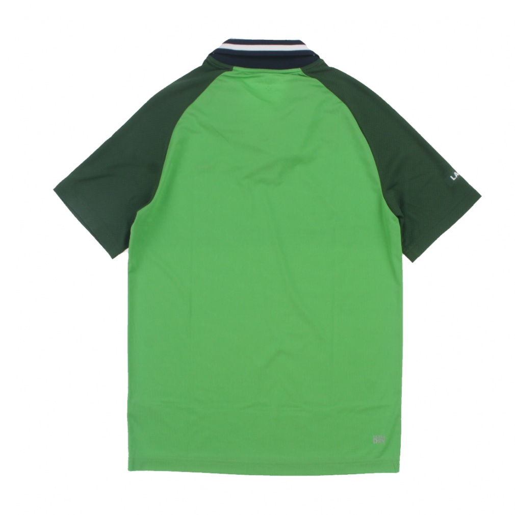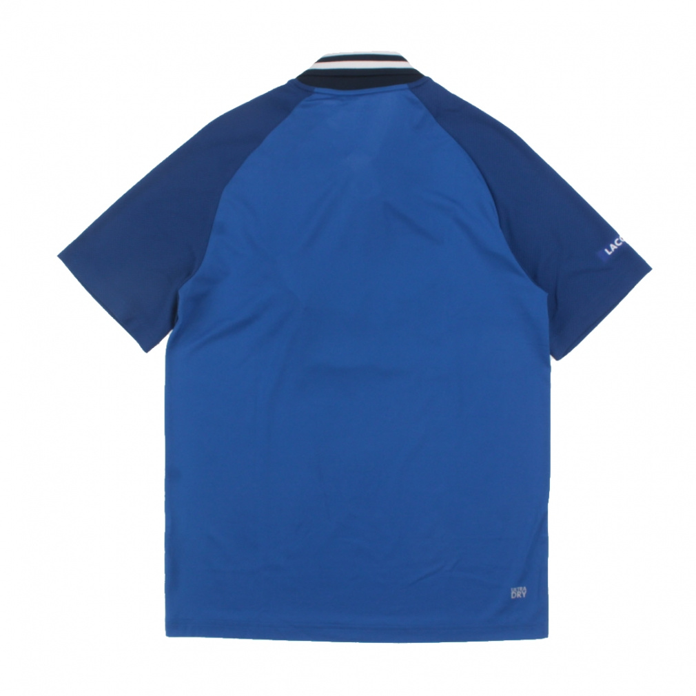 ◇スリーブ切り替えと首元デザインが映える変形ポロシャツ