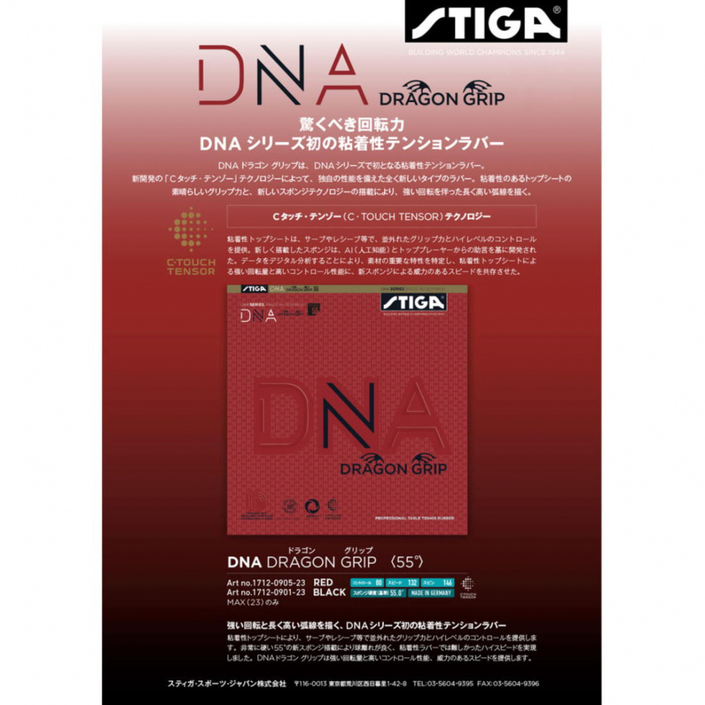 ◇粘着性トップシートにより、サーブやレシーブ等で並外れたグリップ力とハイレベルのコントロールを提供します。非常に硬い55度の新スポンジ搭載により球離れが良く、粘着性ラバーでは難しかったハイスピードを実現しました。DNAドラゴン グリップは強い回転量と高いコントロール性能、威力のあるスピードを提供します。