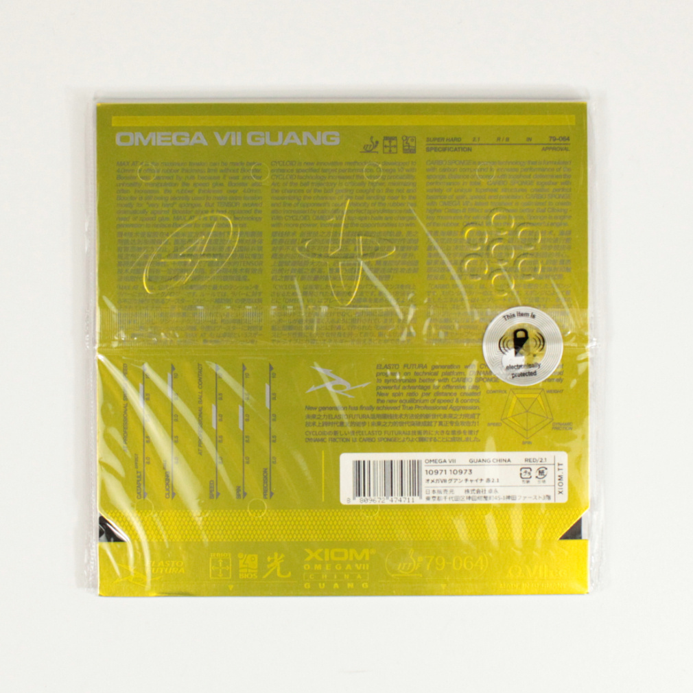 ◇GUANG =「光」と名付けられたこの粘着性テンションラバーは、その名の通り目にも留まらぬ速攻を可能にする。サービスやツッツキのキレは中国製粘着ラバーレベルでありながら、ドライブ攻撃時には従来の非粘着テンションラバーを上回るほどのハイスピードを実現。回転量と球速という相反する要素がトップレベルで共存しており、従来の粘着/テンションユーザーの双方を納得させ、満足させ、驚嘆させる仕上がりとなっている。気泡を超微細にしてあるカーボスポンジの硬度は55度と硬めだが、テンションのかかったやや柔軟な粘着トップシートとの組み合わせが、絶妙にちょうどいい打球感を創出。画期的なグリップ力があり、どんなに打点が早くてもボールが落ちないため、前陣ライジングでの連続攻撃が何本でも迷いなく振り切れる点は感動的だ。飛距離十分で中後陣での打ち合いにも強いためまさに死角のない衝撃的なギアとなっている。中国卓球の英知を拝借しながらそれに付加価値を上乗せし、唯一無二のハイスペックを実現したGUANGで、光あふれる未知の領域に踏み出そう。