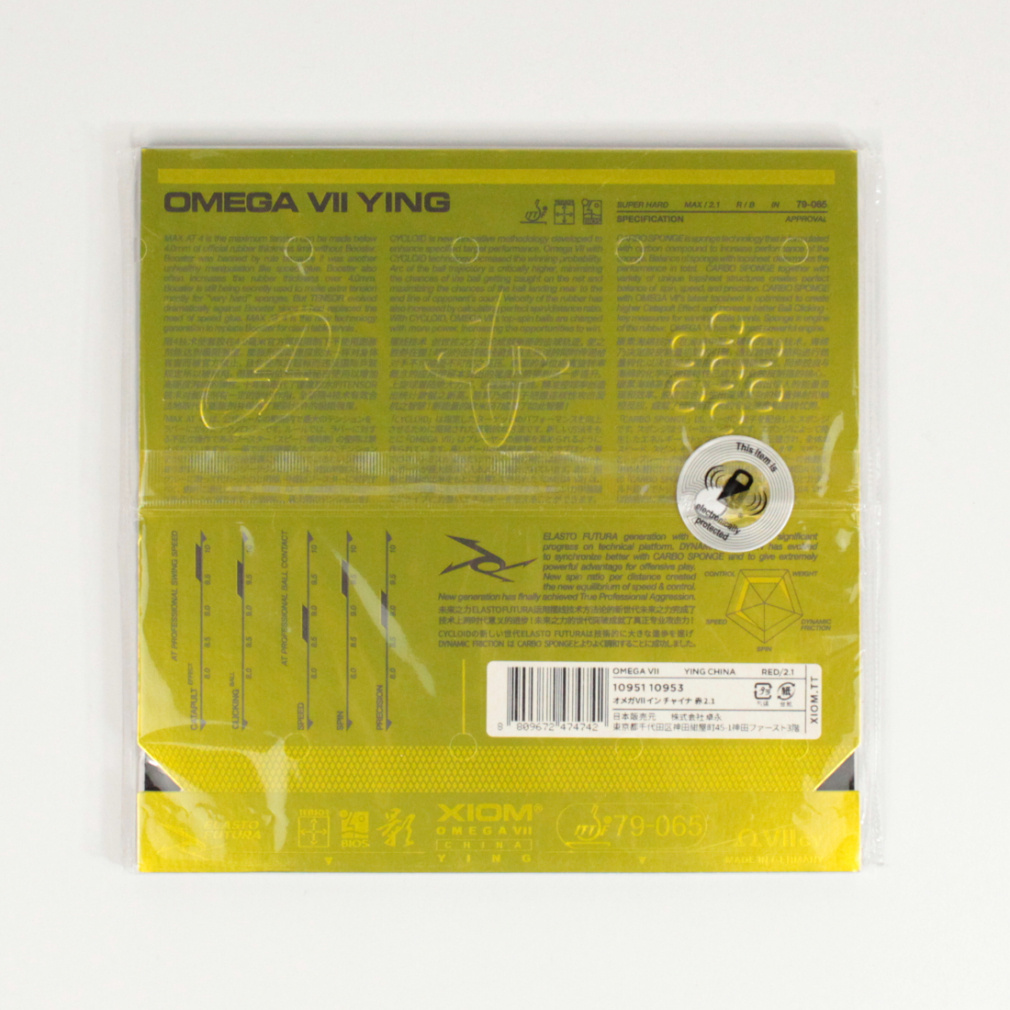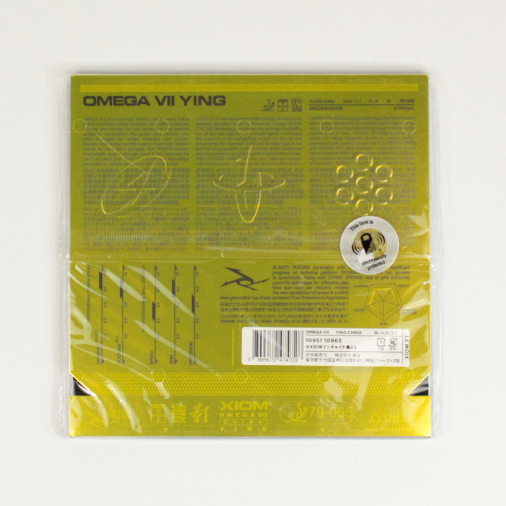 ◇中国卓球の真髄が味わえる本格派YING =「影」という異名を持つこちらの粘着性テンションラバーは、なんと60度というXIOM史上最高の超硬質カーボスポンジを搭載している。その質感は、まさに中国製のハイエンド粘着ラバーそのものだ。単純な弾みではGUANGに及ばないが、頑強さは突出している。中後陣のドライブ戦で強烈なボールの応酬になればなるほど、プレーヤーはこのYINGが頼もしく思えるはずだ。とりわけ、急上昇&急降下するドライブの異様な弾道は、対戦相手を恐怖に陥れるだろう。前陣でのカウンターの精度は惚れ惚れするほど素晴らしく、猛烈に切れたサービスや、ネット際にビタ止めできるストップなどの小技も自由自在。まるで中国のスター選手になったかのような気分が味わえること間違いなしだ。硬さを生かしたスマッシュやカットにも適しており、前陣速攻型や攻撃を織り交ぜるカットマンにもおすすめしたい。重量感が相当あるラバーなので、使用するにはそれなりの覚悟が必要だが、使いこなせた時には新境地が待っている。相手を影の世界に引きずり込むYINGの超絶スピンプレーは、一度覚えたらやみつきだ。